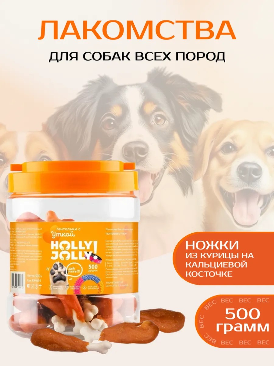 Holly Jolly (Холли Джолли) лакомства для собак ножки из курицы на кальциевой косточке в банке 500гр