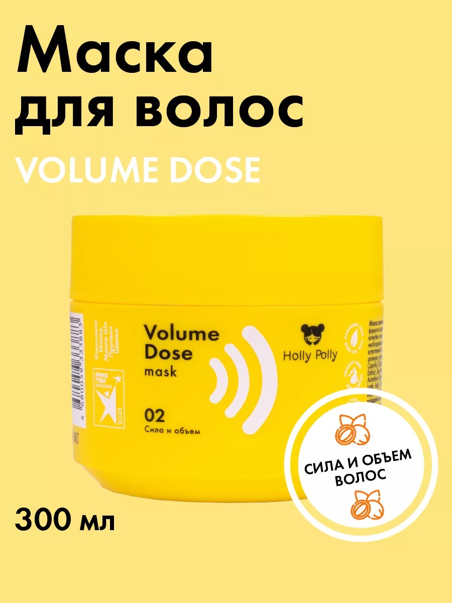 The Holly Polly Volume Dose Hair Mask (300 ml) provides intensive thickening of weakened hair from the inside out and protection from the outside, adding elasticity and silky shine. The nourishing formula is enriched with active ingredients that add noticeable volume and maintain shape throughout the day, restoring strength, moisturizing, and strengthening.