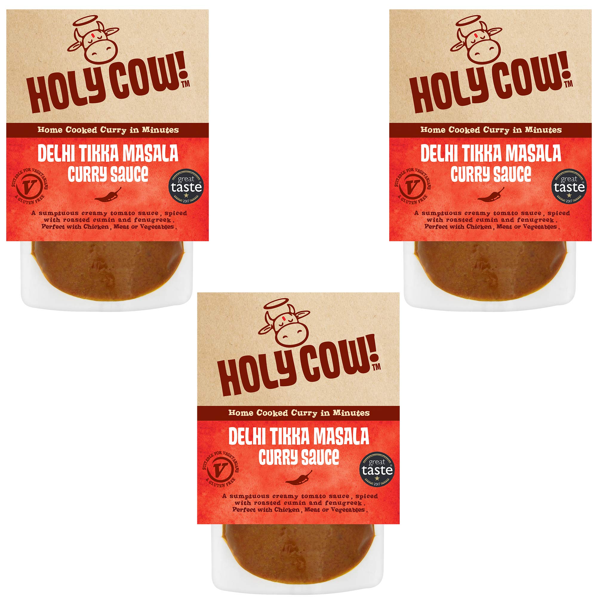 A creamy tomato sauce, seasoned with roasted cumin and fenugreek. Perfect with chicken, meat, or vegetables. Storage Recommendations: Store in a cool, dry place away from sunlight. Can be frozen once opened. Keep refrigerated at all times and consume within 3 days, or freeze any remaining contents. Defrost in the refrigerator and consume within 24 hours. Highlights: All-natural. Suitable for vegans and vegetarians. Gluten-free. Nut-free. Original local recipe. Restaurant-quality curry in minutes. Ingredients: Onion, yogurt (contains milk), diced tomato (12 ), cream (contains milk), crushed tomato (8 ), water, rapeseed oil, honey, ginger paste, garlic paste, salt, butter (contains milk), green chili pepper, spices. Color: paprika extract. See allergens in bold.Holy Cow! Sauce au curry Tikka Masala 250 g (Pack de 3)DESCRIPTION DU PRODUIT Une sauce tomate crémeuse, assaisonnée de cumin grillé et fenugrec. Parfait avec du poulet, de la viande ou des légumes. Recommandations d'entretien : Conserver dans un endroit frais et sec, à l'abri de la lumière du soleil. Peut être congelé une fois ouvert. Conserver à tout moment au frais et consommer dans les 3 jours ou congeler le contenu restant. Décongeler dans un réfrigérateur et consommer en 24 heures. Intéressant : Entièrement naturel. Convient aux végétaliens et végétariens Sans gluten Sans noix Recette locale originale Curry de qualité restaurant en quelques minutes. Ingrédients : Oignon, yaourt (contient du lait), tomate en dés (12 ), crème (contient du lait), tomate broyée (8 ), eau, huile de colza, miel, pâte à gingembre, pâte d'ail, sel, beurre (contient du lait), piment vert, épices. Couleur : extrait de paprika Voir allergènes en gras.