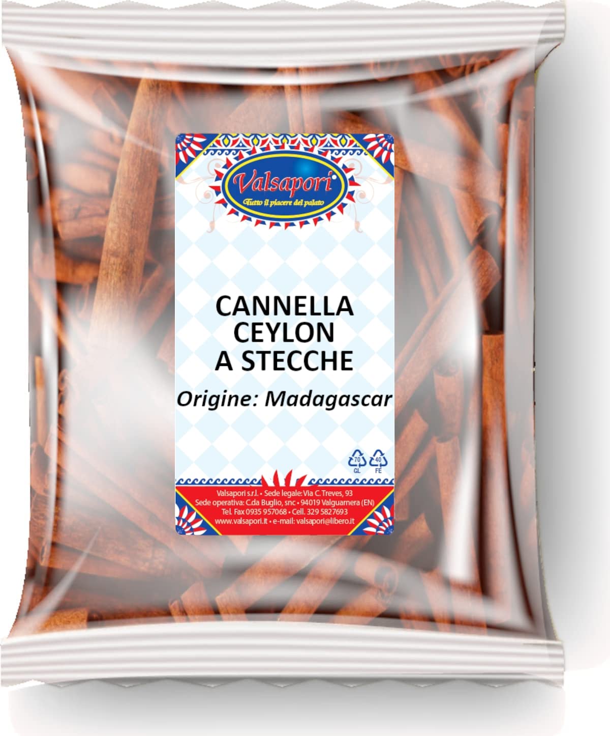 CEYLON Cinnamon with Tips: Our pure Ceylon cinnamon tips are unblended and contain no coumarin. Dried Ceylon Cinnamon: Ceylon cinnamon is considered the finest variety of cinnamon. Its sweet and delicate flavor is ideal for enriching drinks and oriental dishes. Cinnamon in Cooking: Season your dishes, desserts, drinks, and mulled wines with Valsapori cinnamon tips. Flavorful and delicate, Malagasy cinnamon borders on excellence. Premium Cinnamon: Our Madagascar cinnamon is 100 natural. It has been packaged and processed according to very strict standards to offer you a spice of unparalleled quality. Valsapori, drawing on its extensive experience, harvests each plant at the perfect moment, when the concentration of essential oils is at its peak. The product's organoleptic properties are then verified, and only after passing this test is the product hand-harvested and finally left to dry slowly in the sun. Thanks to these steps, you get a natural product in your kitchen that fully retains its long list of active ingredients. Aromatic herbs and spices can completely transform the flavor of a dish, giving it an exceptional boost. The best way to enjoy them would be to grow them in your garden or on your terrace. But if that's not possible, we at Valsapori are here with our sun-dried Sicilian spices.Cannelle de Ceylan à queues séchées au soleil – Enveloppe de 250 g Sans gluten végétalien Cannelle de Cylon 100 pure, sans coumarine – Qualité supérieure (Cannelle de Ceylan à queues)DESCRIPTION DU PRODUIT Cannelle de CEYLON à pointes : nos queues de cannelle de Ceylon Pure n'ont pas été mélangées et ne contient pas de coumarine. Cannelle de cylon séchée : la cannelle cylon est considérée comme la meilleure variété de cannelle. Son goût doux et délicat est idéal pour enrichir les boissons et les plats orientaux. Cannelle en cuisine : assaisonnez vos plats, desserts, boissons et vins chauds avec la cannelle à queues Valsapori. Savoureuse et délicate, cannelle malgasienne borde l'excellence. Cannelle de qualité supérieure : notre cannelle de Madagascar est 100 naturelle. Elle a été emballée et traitée selon des règles très strictes pour vous offrir une épice de qualité incomparable. L'entreprise Valsapori, du haut de son expérience, recueille chaque plante au bon moment, lorsque la concentration d'huiles essentielles est maximale, les propriétés organoleptiques du produit sont ensuite vérifiées et seulement après avoir passé ce test, le produit est récolté manuellement et enfin mis à sécher lentement au soleil pour obtenir le processus de séchage. Grâce à ces passages, vous obtenez dans vos cuisines un produit naturel qui conserve intégralement toute sa longue liste de principes actifs Les herbes aromatiques, ainsi que les épices, sont capables de changer complètement le goût d'un plat, en lui donnant une poussée exceptionnelle. Ce serait le meilleur moyen d'en profiter serait de les cultiver dans le jardin ou sur la terrasse. Mais si vous ne pouvez pas, nous sommes à Valsapori avec nos épices de Sicile séchées au soleil