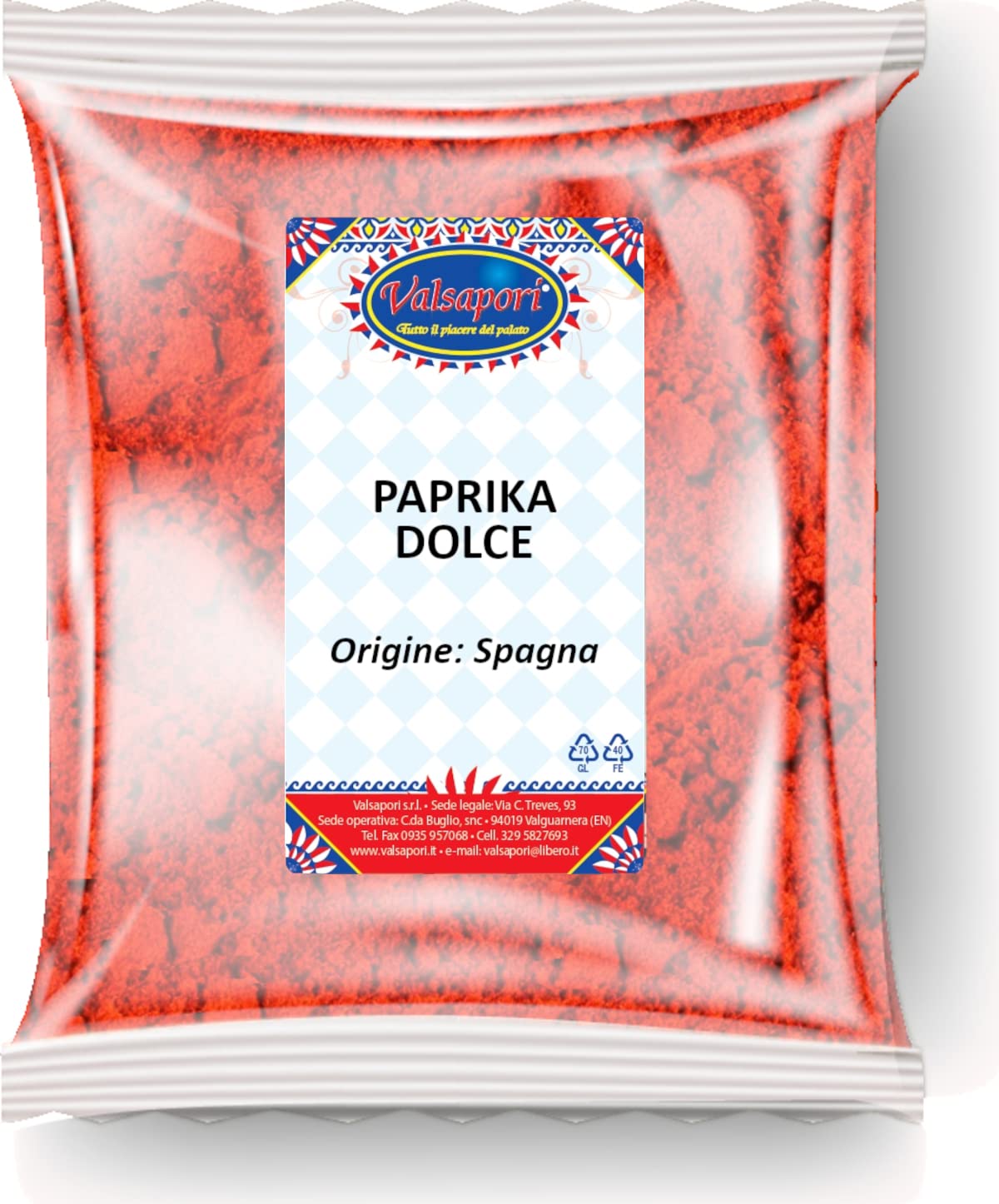 Sweet Paprika: The selection of the raw material, its drying, and its artisanal production give this spice a unique flavor, primarily due to the dehydration process. Dried Paprika: A powerful antioxidant and source of vitamins C, E, A, and B, phosphorus, magnesium, potassium, calcium, and folic acid. It contains a high fiber content and is low in fat, making it ideal for a balanced diet. Benefits of Paprika: Promotes collagen formation, contributes to maintaining good eyesight, improves digestion, strengthens the immune system, aids sleep, has analgesic properties, helps burn fat, and prevents anemia. ? Paprika in Cooking: This is a condiment that should be in every kitchen for all types of dishes. One of its main uses is in the preparation of homemade sausages, such as sobrasadas, chistorras, and other sausages, as well as in meat marinades and sausages. Valsapori, drawing on its extensive experience, harvests each plant at the perfect moment, when the concentration of essential oils is at its peak. The product's organoleptic properties are then verified, and only after passing this test is the product harvested by hand and finally left to dry slowly in the sun. Thanks to these steps, you get a natural product in your kitchen that fully retains its long list of active ingredients. Aromatic herbs and spices can completely transform the taste of a dish, giving it an exceptional boost. The best way to enjoy them would be to grow them in your garden or on your terrace. But if that's not possible, we at Valsapori offer our sun-dried Sicilian spices. INGREDIENTS Store in a cool, dry place, away from light and heat sources. Once opened, reseal tightly and consume within 6 months. Do not exceed the expiration date indicated on the packaging.Paprica Dolce en poudre séchée au soleil – Enveloppe de 250 g sans gluten végétalien Saveur épicée, apporte un goût légèrement piquant aux plats – Qualité Premium (Paprika Sweet Broyé)DESCRIPTION DU PRODUIT DESCRIPTION DU PRODUIT Paprika douce : la sélection de la matière première, son séchage et sa production artisanale donnent à cette épice un goût unique, dû principalement au processus de déshydratation. Paprika séchée : antioxydant puissant et source de vitamines C, E, A et B, phosphore, magnésium, potassium, calcium et acide folique. Contient une haute teneur en fibres et peu de matières grasses, donc idéal pour une alimentation équilibrée. Les avantages de la paprica : favorise la formation de collagène, contribue au maintien de la vue, améliore la digestion, renforce le système immunitaire, aide à dormir, a un pouvoir analgésique, aide à brûler les graisses et à prévenir l'anémie. ? Paprica in Cucina : C'est un condiment qui ne peut manquer dans votre cuisine pour tous les types de plats. L'une des utilisations principales est la préparation de saucisses faites maison, comme les sobrasadas, les chistorras et les saucisses, les marinades de viande et les saucisses. L'entreprise Valsapori, du haut de son expérience, recueille chaque plante au bon moment, lorsque la concentration d'huiles essentielles est maximale, les propriétés organoleptiques du produit sont ensuite vérifiées et seulement après avoir passé ce test, le produit est récolté manuellement et enfin mis à sécher lentement au soleil pour obtenir le processus de séchage. Grâce à ces passages, vous obtenez dans vos cuisines un produit naturel qui conserve intégralement toute sa longue liste de principes actifs Les herbes aromatiques, ainsi que les épices, sont capables de changer complètement le goût d'un plat, en lui donnant une poussée exceptionnelle. Ce serait le meilleur moyen d'en profiter serait de les cultiver dans le jardin ou sur la terrasse. Mais si vous ne pouvez pas, nous sommes à Valsapori avec nos épices de Sicile séchées au soleil INGRÉDIENTS Conserver dans un endroit frais et sec, à l'abri de la lumière et des sources de chaleur. Après ouverture, refermer soigneusement et consommer dans les 6 mois. Ne pas dépasser la date d'expiration indiquée sur l'emballage.