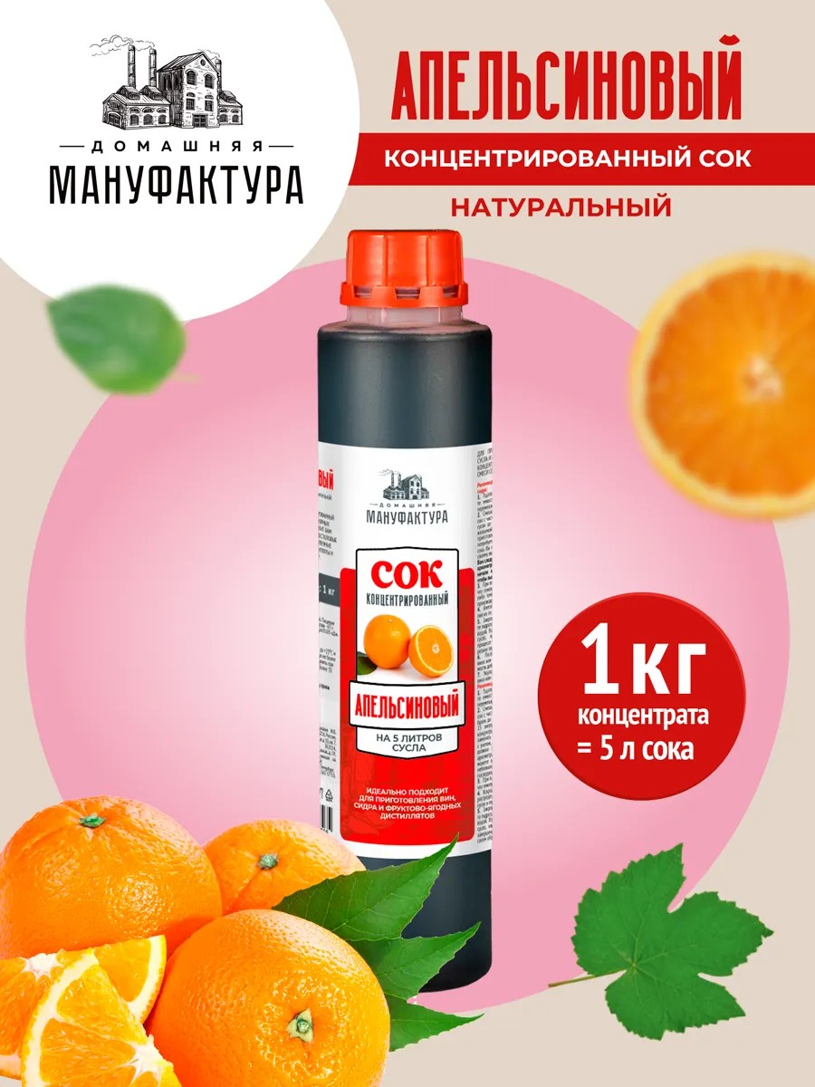 "Концентрированный апельсиновый сок «Домашняя Мануфактура сок – натуральный продукт, сохраняющий всю пользу свежих апельсинов. Сок не содержит красителей, ароматизаторов, сахара, лимонной кислоты. Наш апельсиновый концентрат отлично подходит для приготовления превосходных столовых и игристых вин, качественных фруктово-ягодных дистиллятов и вкуснейших сидров, а также вкуснейших натуральных питьевых соков. Отсутствие консервантов позволяет провести качественное брожение, и сохранить всю ароматику исходного сырья.