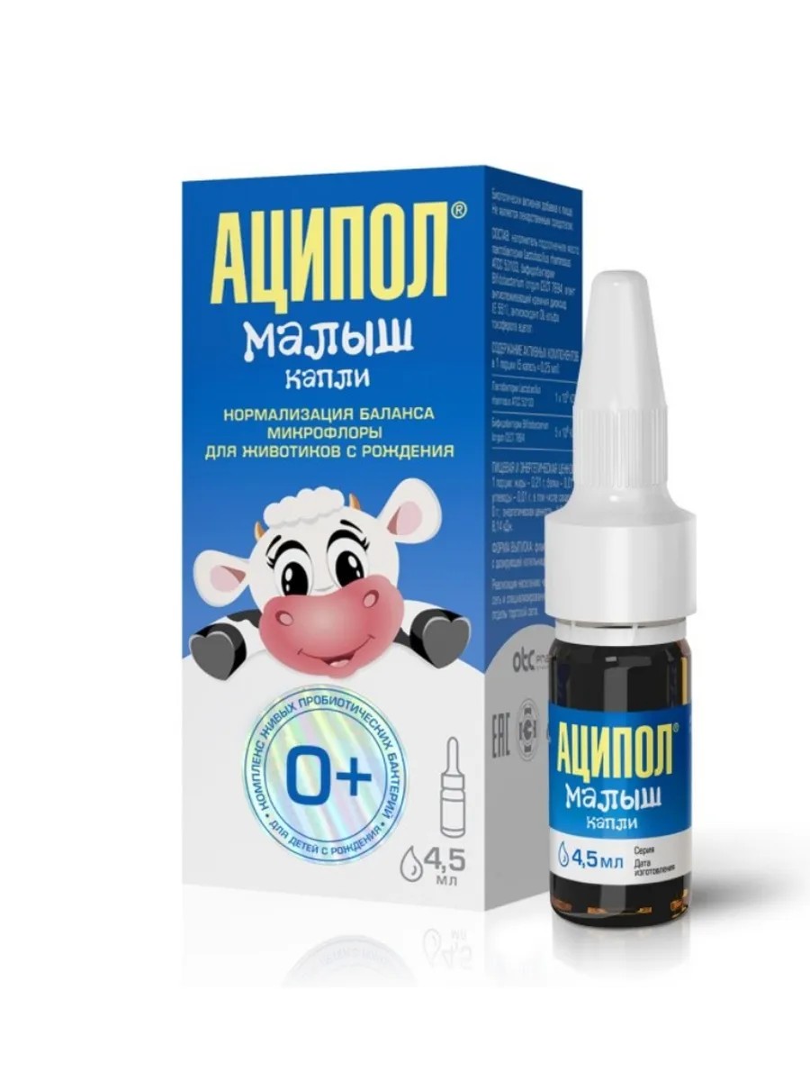 Аципол Малыш капли - капли с пробиотиками для нормализации микрофлоры кишечника у младенцев.