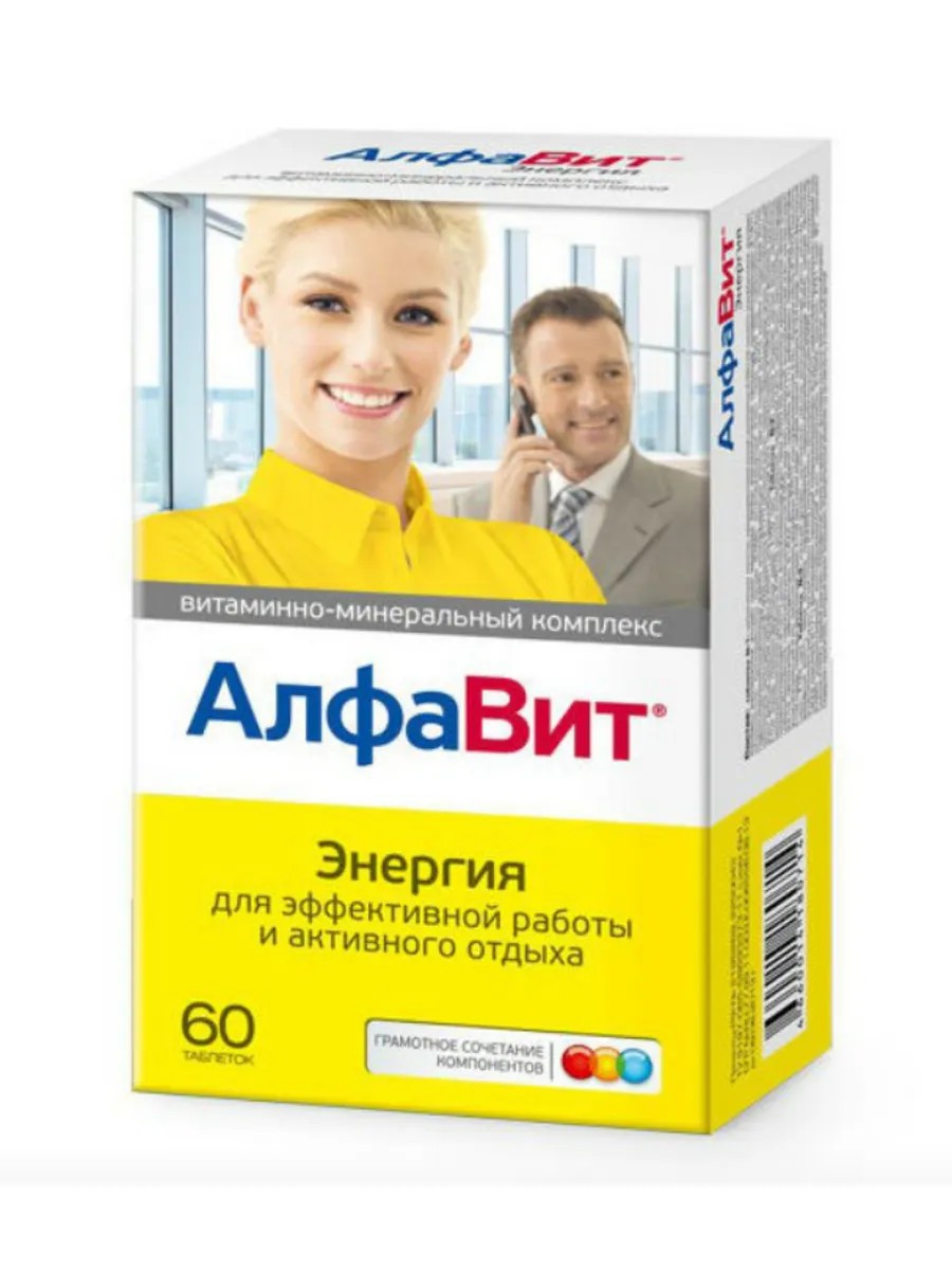 Алфавит Энергия - комплекс для повышения тонуса и борьбы с усталостью. Содержит женьшень, витамины группы B и железо. Алфавит Энергия - это биологически активная добавка (БАД) к пище - комплекс витаминов и минералов, разработанный специально для активных людей, которые нуждаются в повышении своей энергии и выносливости. Комплекс подходит и для женщин, и для мужчин. Он будет источником энергии на протяжении всего дня. Препарат содержит витамины и минералы, необходимые для поддержания здоровья в целом и улучшения умственной и физической работоспособности. Кроме того, Алфавит Энергия помогает укрепить иммунную систему, улучшить пищеварение и нормализовать обмен веществ.