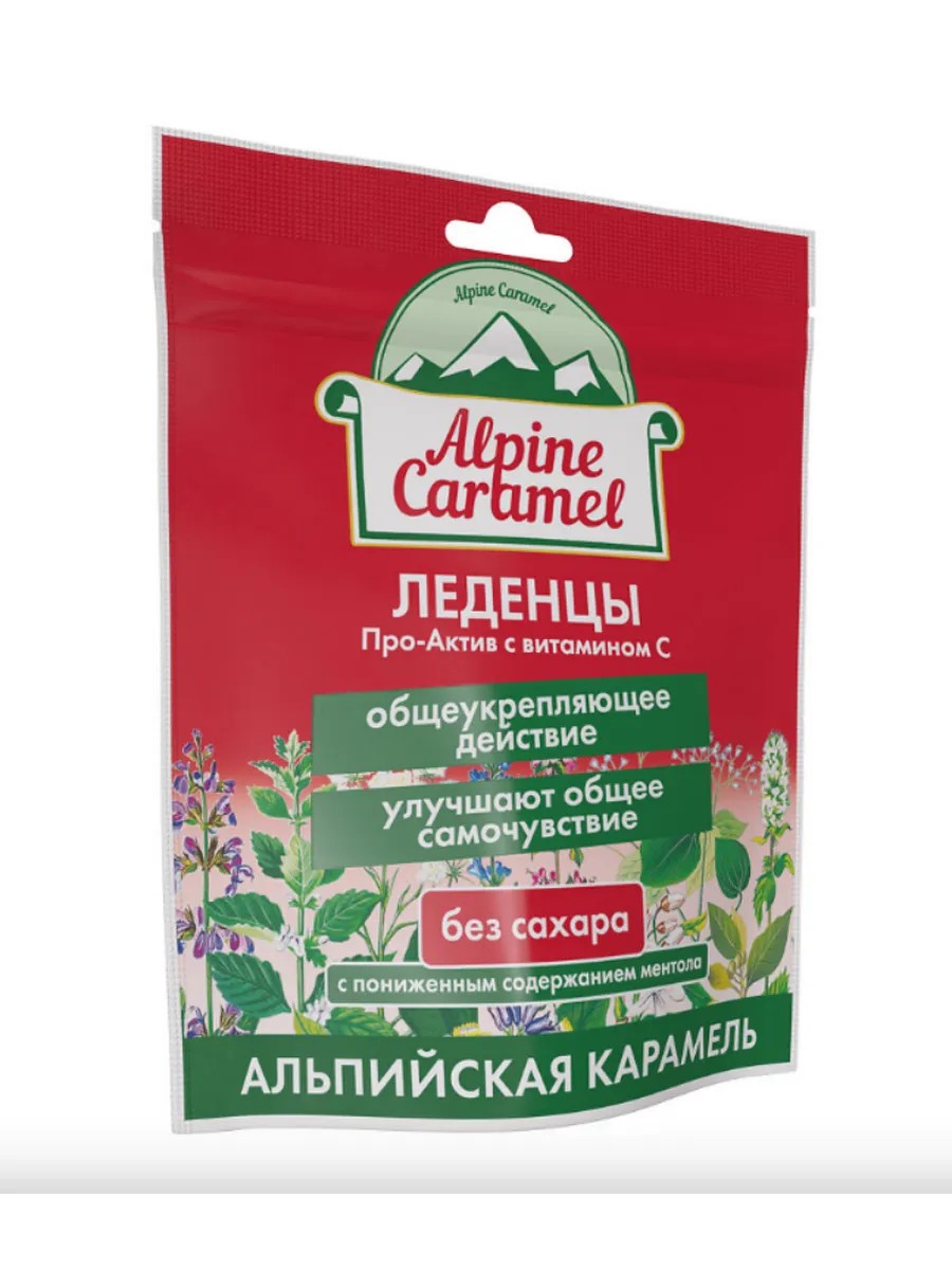 Alpine Caramel Альпийская Карамель Про-Актив леденцы (с вит С, без сахара) - леденцы без сахара с витамином С для укрепления иммунитета. Освежают дыхание, подходят для диабетиков и следящих за фигурой. Леденцы для рассасывания .