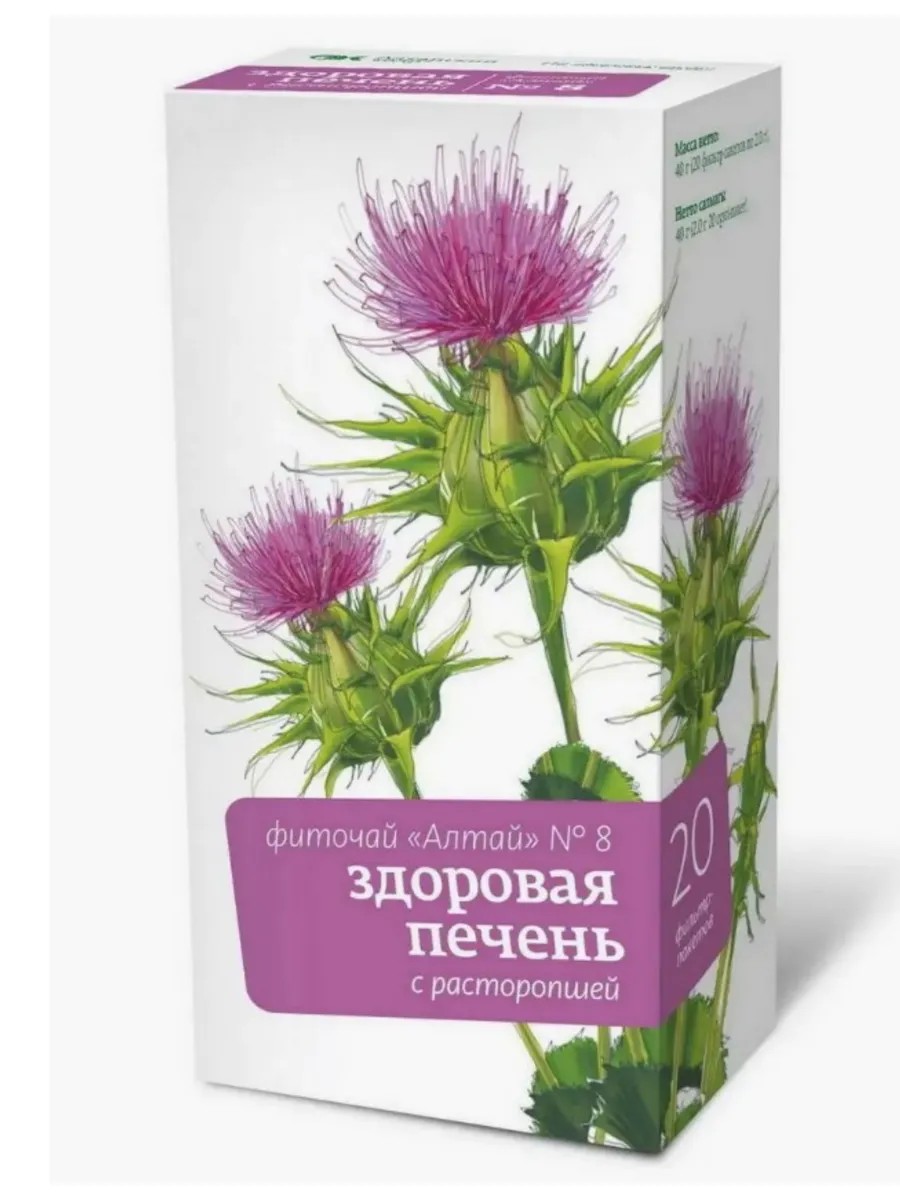 Фиточай алтай № 8 здоровая печень расторопша - биологически активная добавка (БАД) к пище, содержащая растительные компоненты, благотворно влияющие на функционирование печени. В составе чая присутствуют активные вещества, которые помогают очищать и регенерировать печеночные клетки, улучшают процесс желчеотделения и обмена веществ, способствуют улучшению работы всего организма. Фиточай алтай № 8 здоровая печень расторопша производится в Алтайском крае, с использованием передовых технологий и методов, что гарантирует его высокое качество. Способ применения и дозы