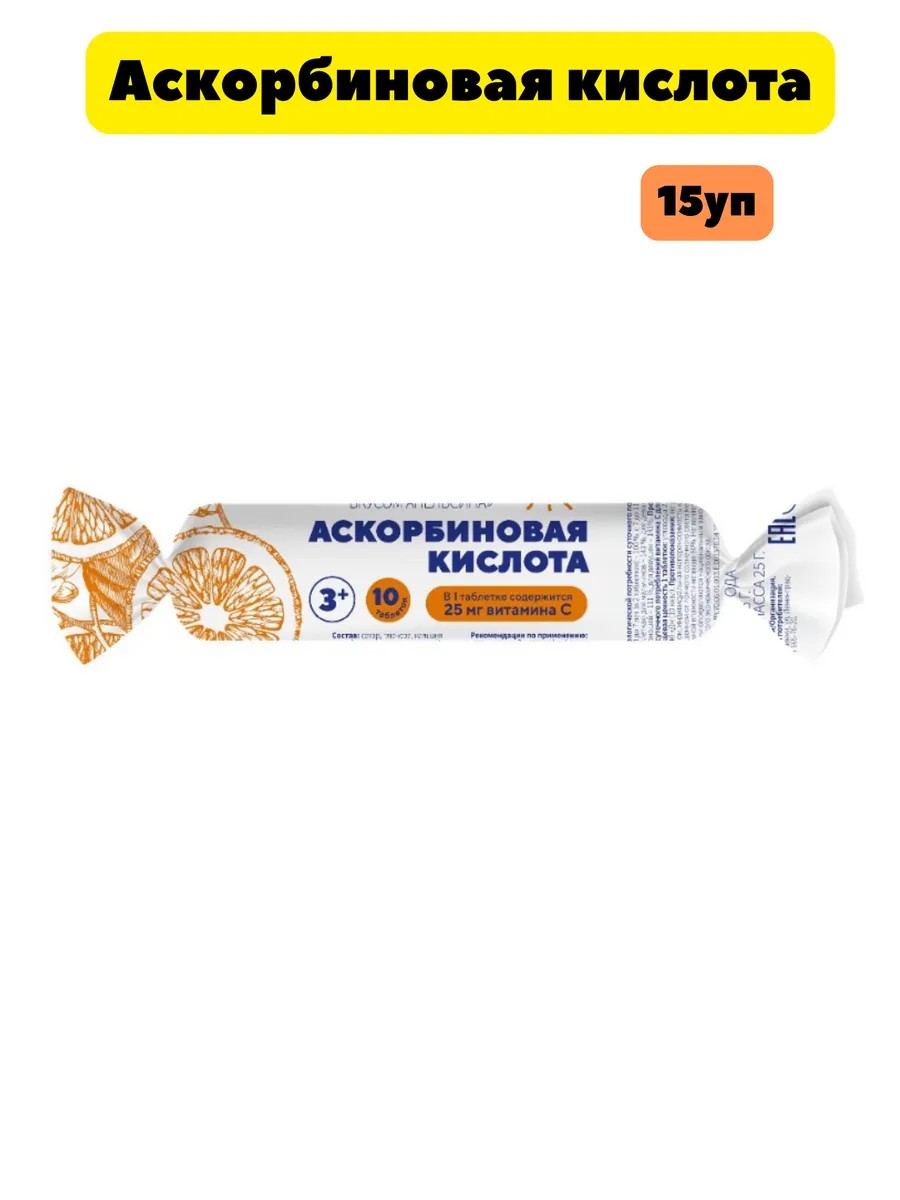 Аскорбиновая к-та (апельсин) 3 г крутка 10шт, 15уп