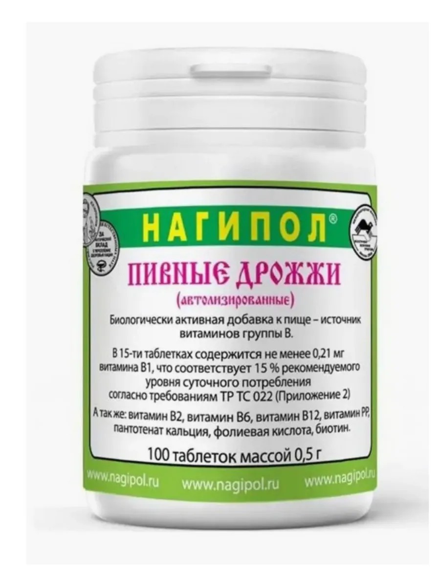 | Торговое наименование | биологически активная добавка к пище "Пивные дрожжи "Нагипол" (таблетки массой 500 мг) |