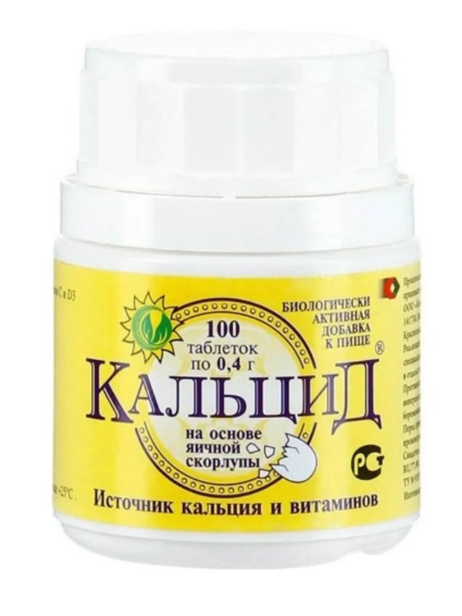 Кальцид (100 штук таблеток) - это биологически активная добавка к пище, которая содержиторганический кальций и витаминов D и С. Эти компоненты необходимы для правильного роста, развития и поддержания здоровья костей и зубов. Кальцид получают путем обработки яичной скорлупы, используя современные биотехнологии и сохраняя полностью естественный набор микроэлементов, содержащийся в скорлупе, с дополнительным введением витаминов. БАД эффективно восполняет дефицит кальция, препятствует развитию остеопороза улучшает состояние зубов и ногтей повышает иммунитет к простудным заболевания, положительно влияет на кроветворную функцию. Витамины способствуют максимальному усвоению кальция, набор микроэлементов в сочетании с кальцием и витаминами повышают иммунитет.