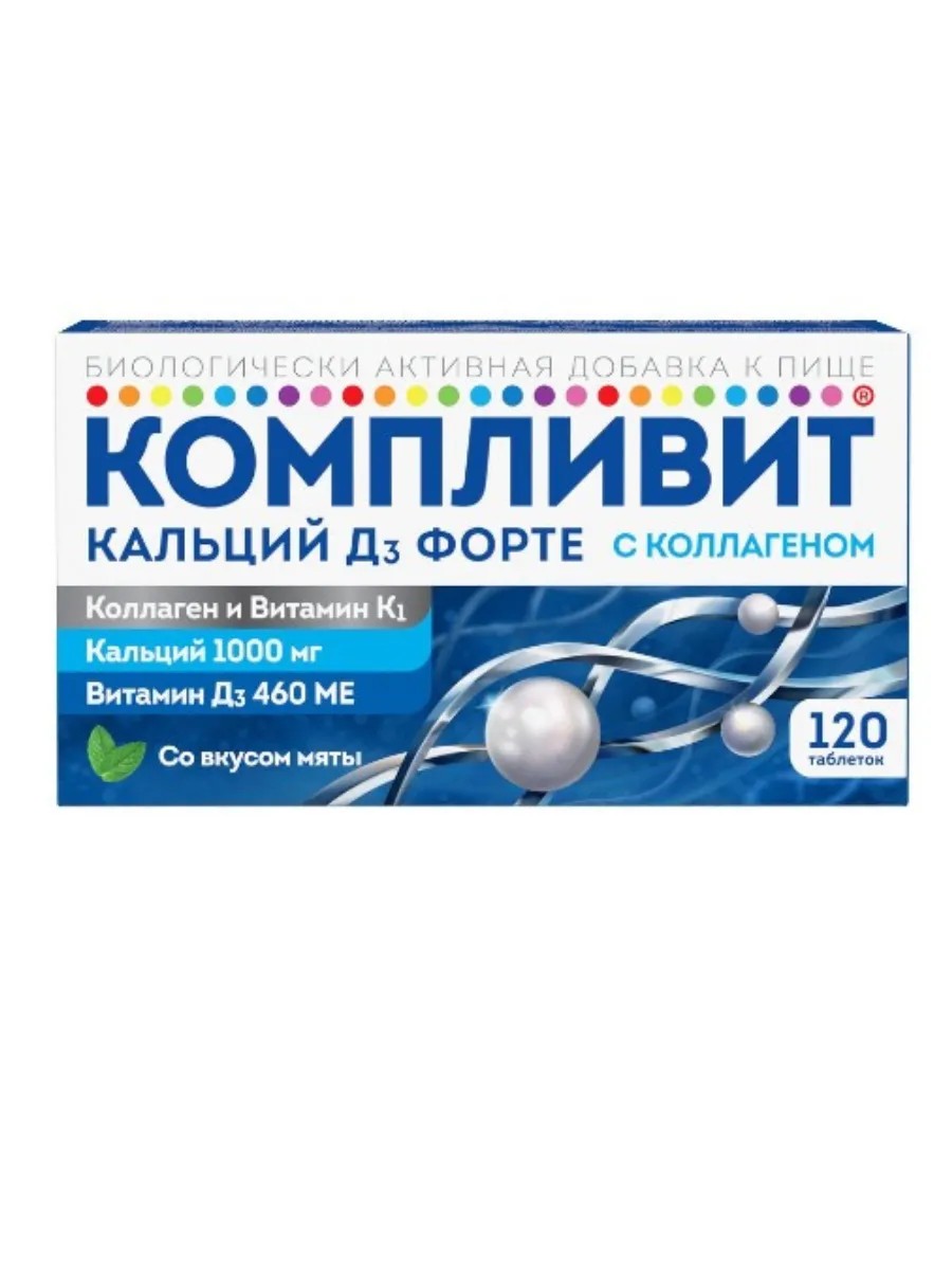 The biologically active food supplement "Complivit Calcium D3 forte with collagen" is recommended as an additional source of calcium, vitamins D3 (460 IU) and K1.