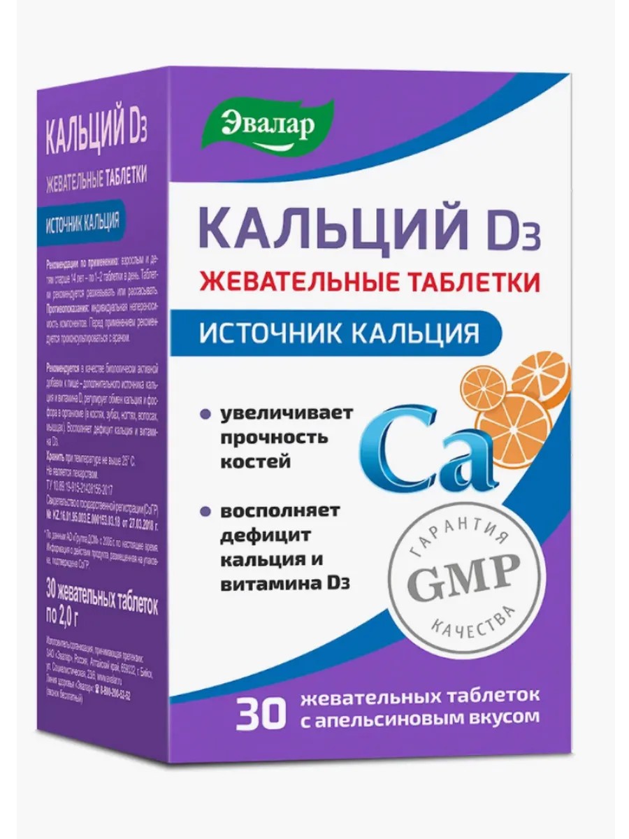 Кальций Д3 - жевательные таблетки с кальцием и витамином D3 для здоровья костей и зубов. Вкус апельсина. Кальций D3 - жевательные таблетки с приятным апельсиновым вкусом.