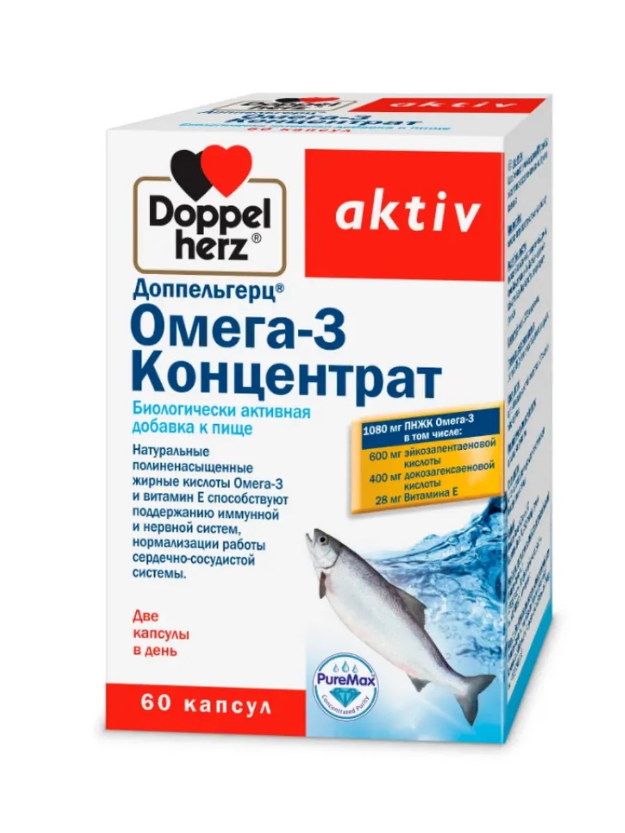 Доппельгерц Актив Омега-3 Концентрат - концентрированные капсулы Омега-3 для поддержки сердца, суставов и когнитивных функций. Натуральные полиненасыщенные жирные кислоты Омега -3