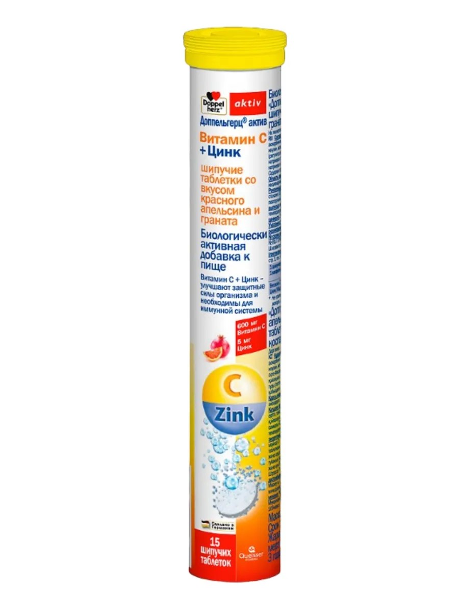 Домашняя аптечка. Доппельгерц актив витамин с+цинк 15 шт. шип