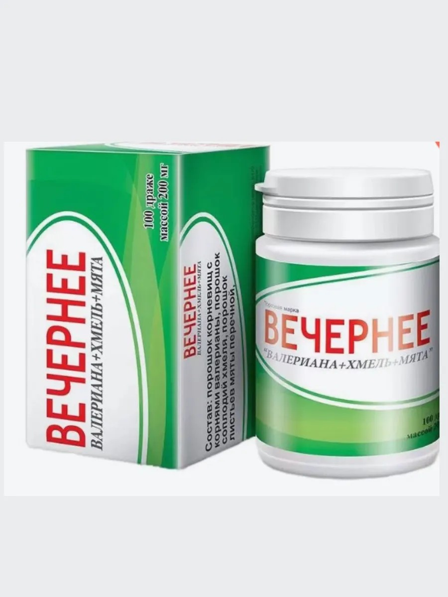 Вечернее драже (валер., хмель, мята) - драже с растительными экстрактами для успокоения. Устраняют раздражительность, нормализуют сон. Комбинированное растительное средство успокаивающего действия.