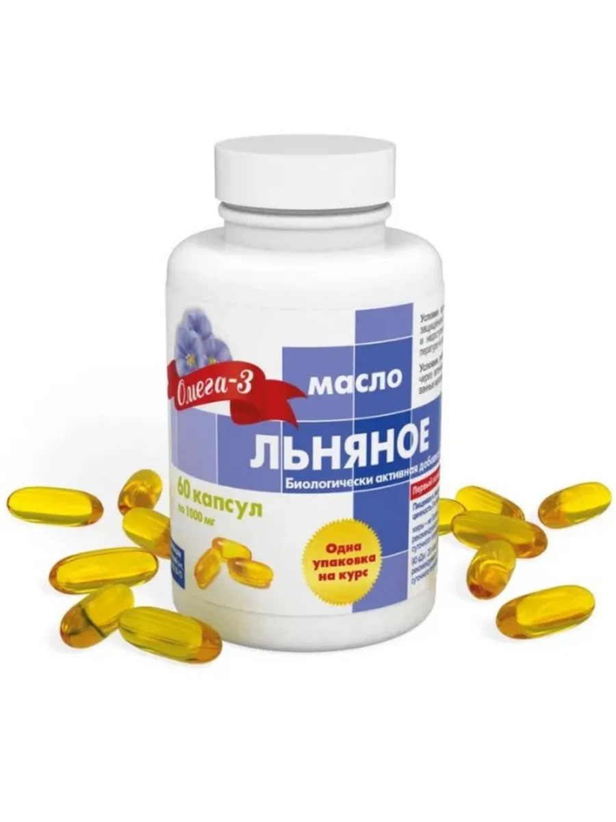 Льняное масло первого холодного отжима реалкапс - это качественный продукт, полученный из семян льна. Оно содержит множество полезных веществ, таких как ненасыщенные жирные кислоты Омега-3, витамин Е и микроэлементы. Содержание полиненасыщенных жирных кислот (ПНЖК) омега-3 в льняном масле почти вдвое выше, чем в рыбьем жире. Данный продукт предупреждает болезни сосудов и образование тромбов. Ежедневное употребление льняного масла способствует профилактике развития сердечных приступов, так как из-за уменьшения вязкости крови и нормализации уровня жиров в крови нагрузка на сердце снижается. Улучшает состояние кожи и волос, способствует заживлению повреждённых тканей. Масло семян льна обладает мягчительным, противовоспалительным, обволакивающим, мочегонным, лёгким слабительным, бактерицидным действием. Капсулы масла сделаны из желатина, что обеспечивает простоту приема и хранения масла. Кроме того, удобство применения капсул позволяет сохранить максимальное количество питательных веществ в масле. Способ применения и дозы