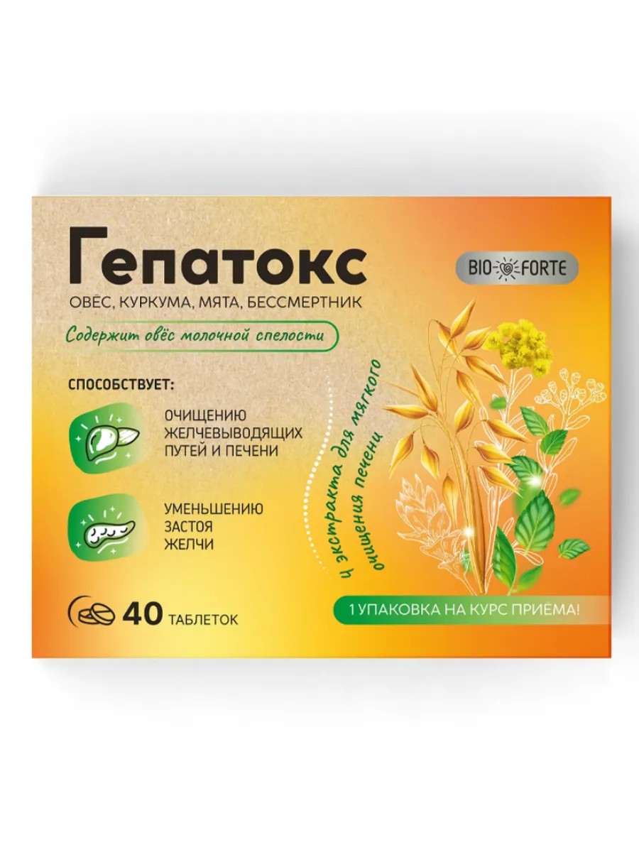 Гепатокс BioForte комплекс д/печени - таблетки для детоксикации печени. Содержат расторопшу, артишок и куркуму. Восстанавливают клетки печени.