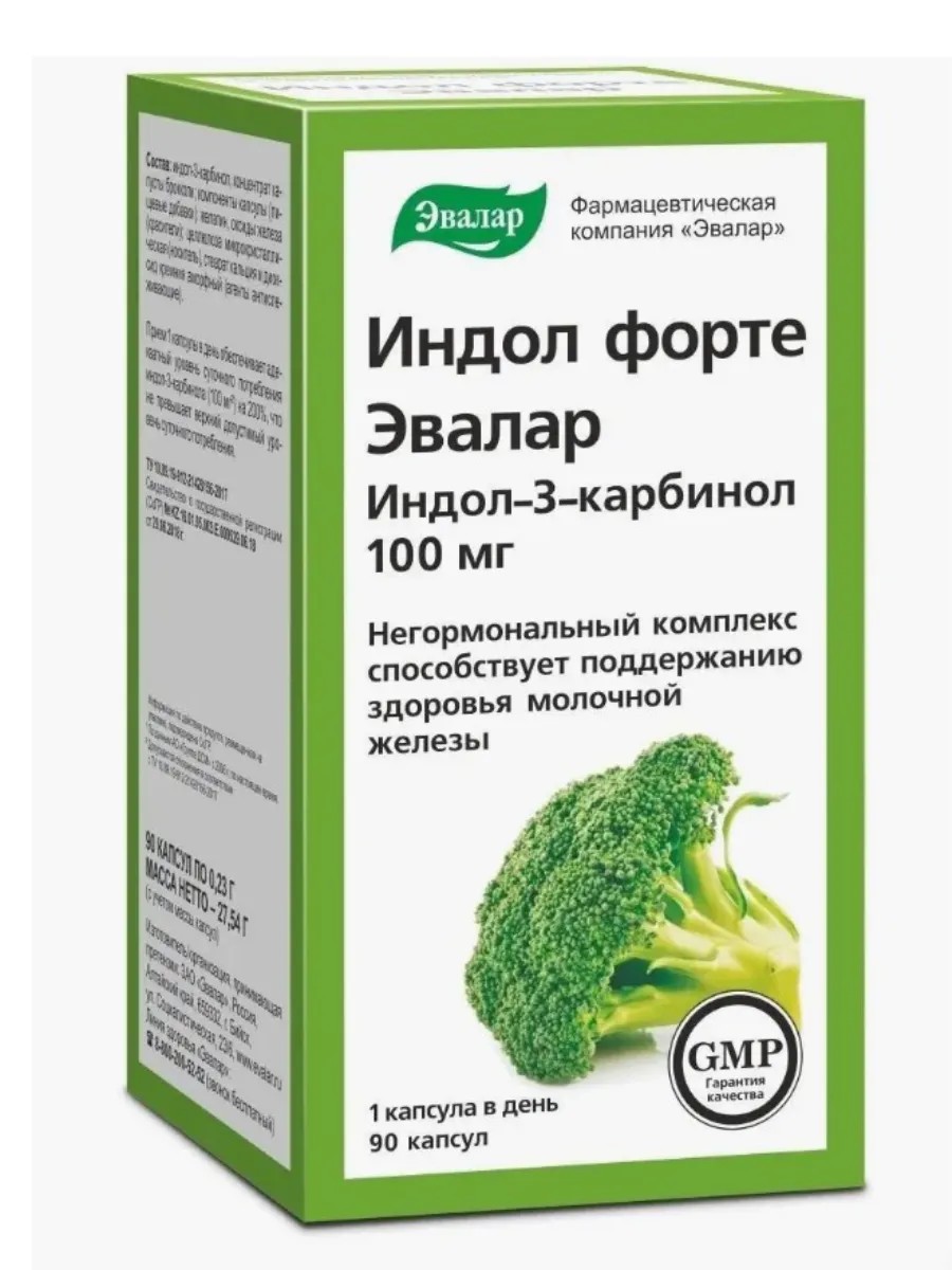 Индол Форте - это биологически активная добавка, представленная в виде капсул массой 230 мг. Каждая капсула содержит лактозу, экстракт брокколи (индол-3-карбинол), крахмал картофельный. Индол-3-карбинол оказывает действие, направленное на профилактику патологических процессов и сохранение здоровья репродуктивной системы женщин, включая молочную железу, шейку матки, яичники, эндометрий и миометрий . Индол Форте рекомендуется для приведения в норму гормонального фона, защиты клеток от вредного воздействия окружающей среды и повышения защитных функций организма в целом.