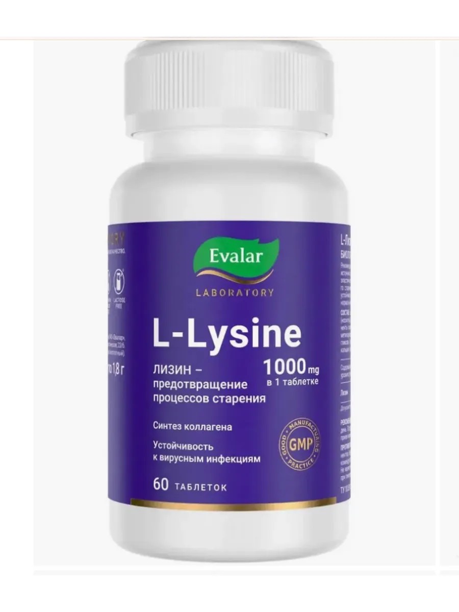 L-Лизин 1000 мг табл - таблетки с L-лизином для поддержки иммунитета и синтеза коллагена. Участвует в восстановлении тканей, помогает при герпесе. L-Лизин 1000 мг – это биологически активная добавка, которая содержит высокую концентрацию аминокислоты лизина. Она представлена в виде таблеток, покрытых специальной оболочкой, что обеспечивает ее лучшее усвоение и защищает от воздействия желудочной среды.