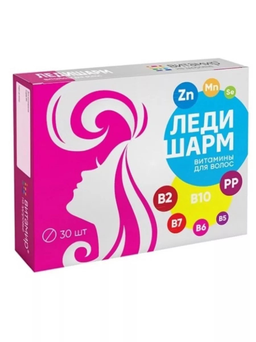 LadyCharm Hair Vitamins is a dietary supplement (DS) – a beneficial complex of vitamins and microelements essential for healthy hair and scalp. It contains B vitamins, brewer's yeast, zinc, inulin, selenium, and other beneficial substances that have a beneficial effect on the condition of hair and skin, activating regenerative processes in the hair and nails, and strengthens the body as a whole, increasing resistance to infections and stress.