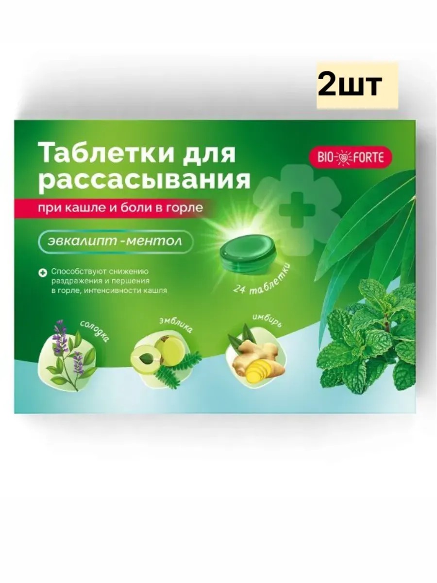 Таблетки при кашле и боли в горле BioForte д/рассас (эвкалипт-ментол) - таблетки для рассасывания с экстрактами эвкалипта и ментола для уменьшения боли и воспаления в горле. Освежают дыхание и снимают дискомфорт. Эффективная комбинация экстрактов растительного происхождения. Активные компоненты, входящие в состав таблеток, рекомендованы при кашле и боли в горле.