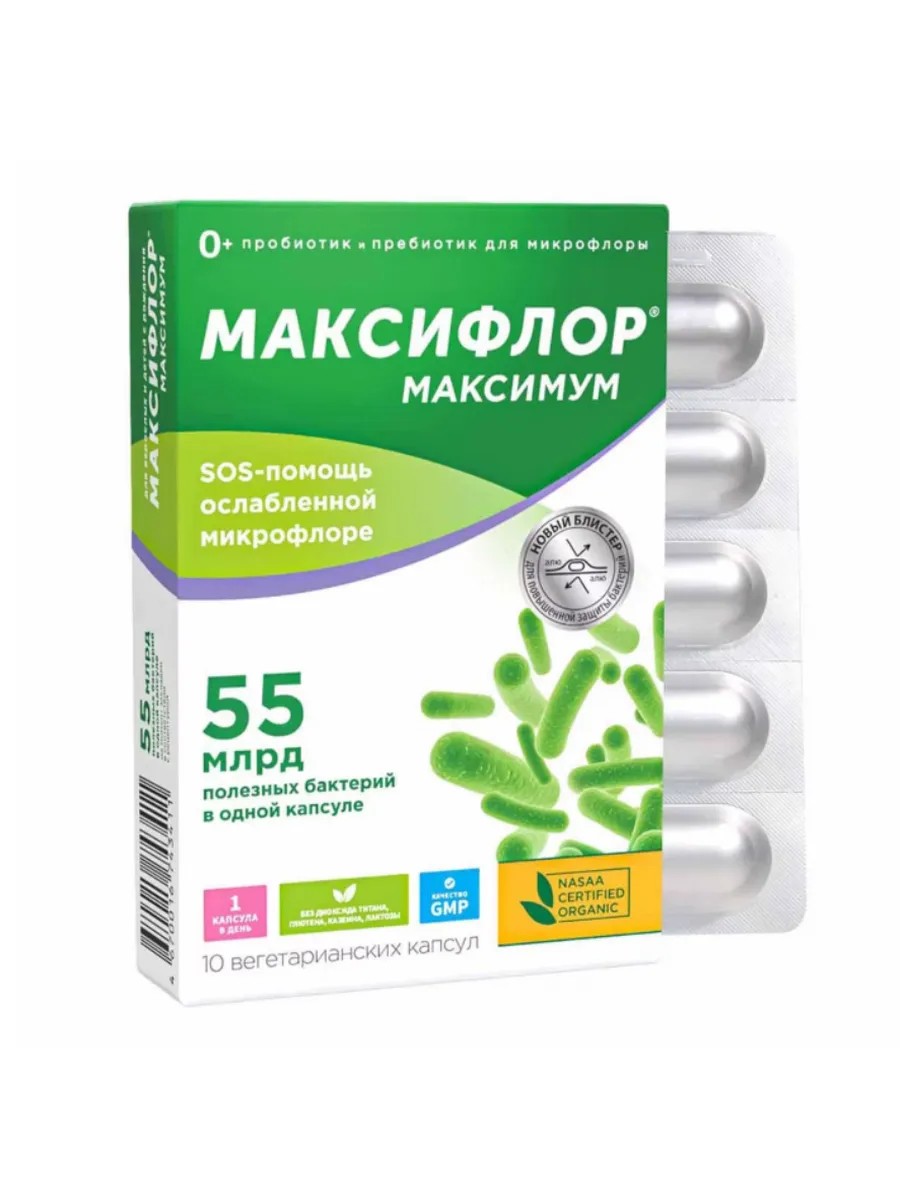 Максифлор Максимум капс - пробиотик с высокой концентрацией полезных бактерий.