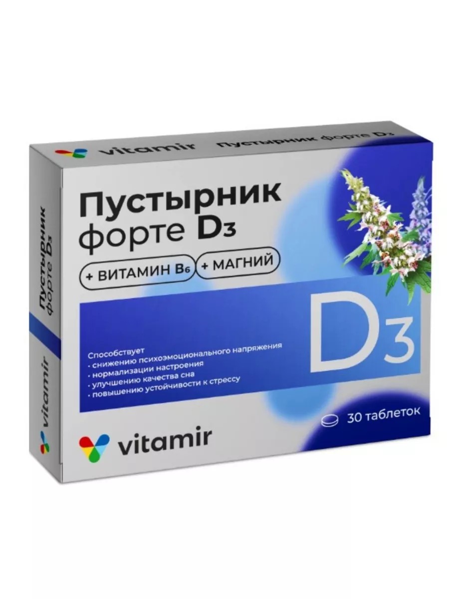 Пустырник Форте Д3 - биологически активная добавка, содержащая экстракт пустырника, который обладает успокаивающим эффектом на нервную систему человека. Витамин D3 участвует в обеспечении положительного эмоционального фона путем превращения триптофана из пищи в серотонин («гормон счастья»). Таким образом, витамин D3 способствует улучшению настроения. Препарат доступен в виде таблеток, покрытых оболочкой, массой 600 мг. Для достижения максимального эффекта препарат следует принимать согласно инструкции. Благотворно влияет на нервную систему, а также способствует нормализации ритма сердца, снижению артериального давления, улучшению сна и эмоционального состояния.