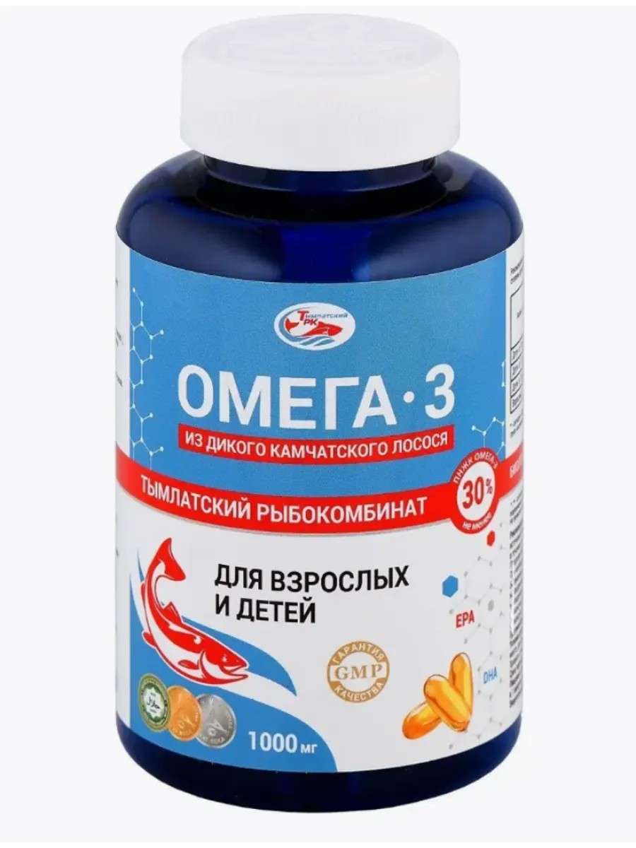 Омега-3 из дикого камчат лосося капс д/взр и дет - капсулы с Омега-3, подходящие для детей и взрослых. Поддерживают здоровье сердца, мозга и иммунитета.Биологически активная добавка (БАД) к пище Salmoniсa омега-3 из дикого камчатского лосося представляет собой дополнение к питанию, содержащее натуральные жирные кислоты Омега-3. Они получены из мяса дикого лосося, живущего на Камчатке, без применения химических препаратов и консервантов. Каждая капсула содержит 1000 мг рыбного жира из дальневосточных лососевых видов рыб (в т.ч. дикого камчатского лосося) для комплексной заботы о здоровье взрослых и детей. Продукт помогает улучшить работу сердечно-сосудистой системы, поддерживает здоровье глаз и суставов, способствует укреплению иммунитета и улучшению настроения.
