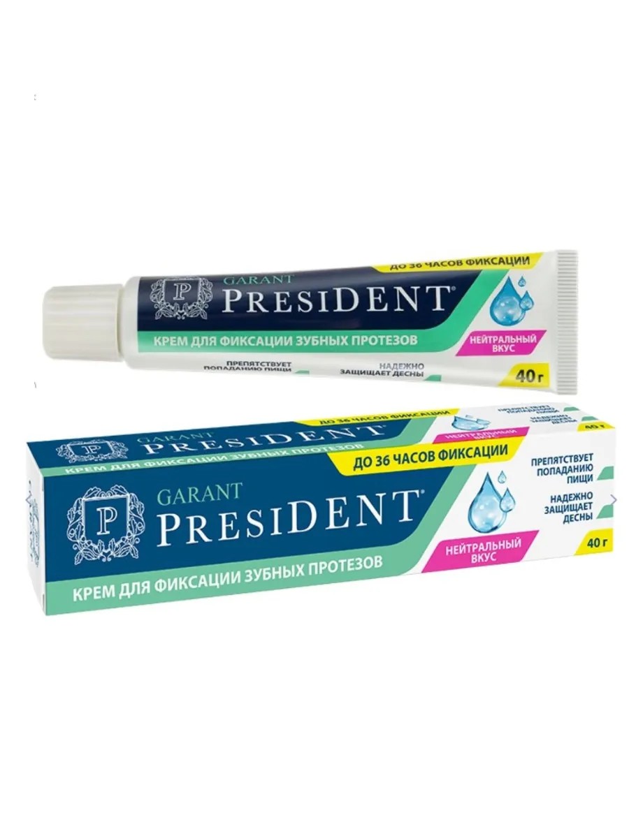 ПрезиДент Гарант крем для зубных протезов Нейтральный вкус - крем без запаха и вкуса для фиксации протезов. Обеспечивает комфорт и стабильность в течение дня. Крем для фиксации зубных протезов. Он обладает нейтральным вкусом и предназначен для людей, которые не хотят ощущать запах и вкус крема на своих зубных протезах. Крем обеспечивает надежную фиксацию протезов в течение всего дня, предотвращая их смещение и выпадение в процессе еды и разговора.