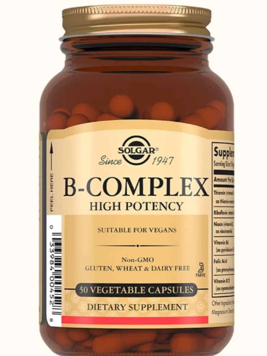 Солгар B-Комплекс капс - комплекс витаминов группы B для поддержки нервной системы, энергии и обмена веществ.