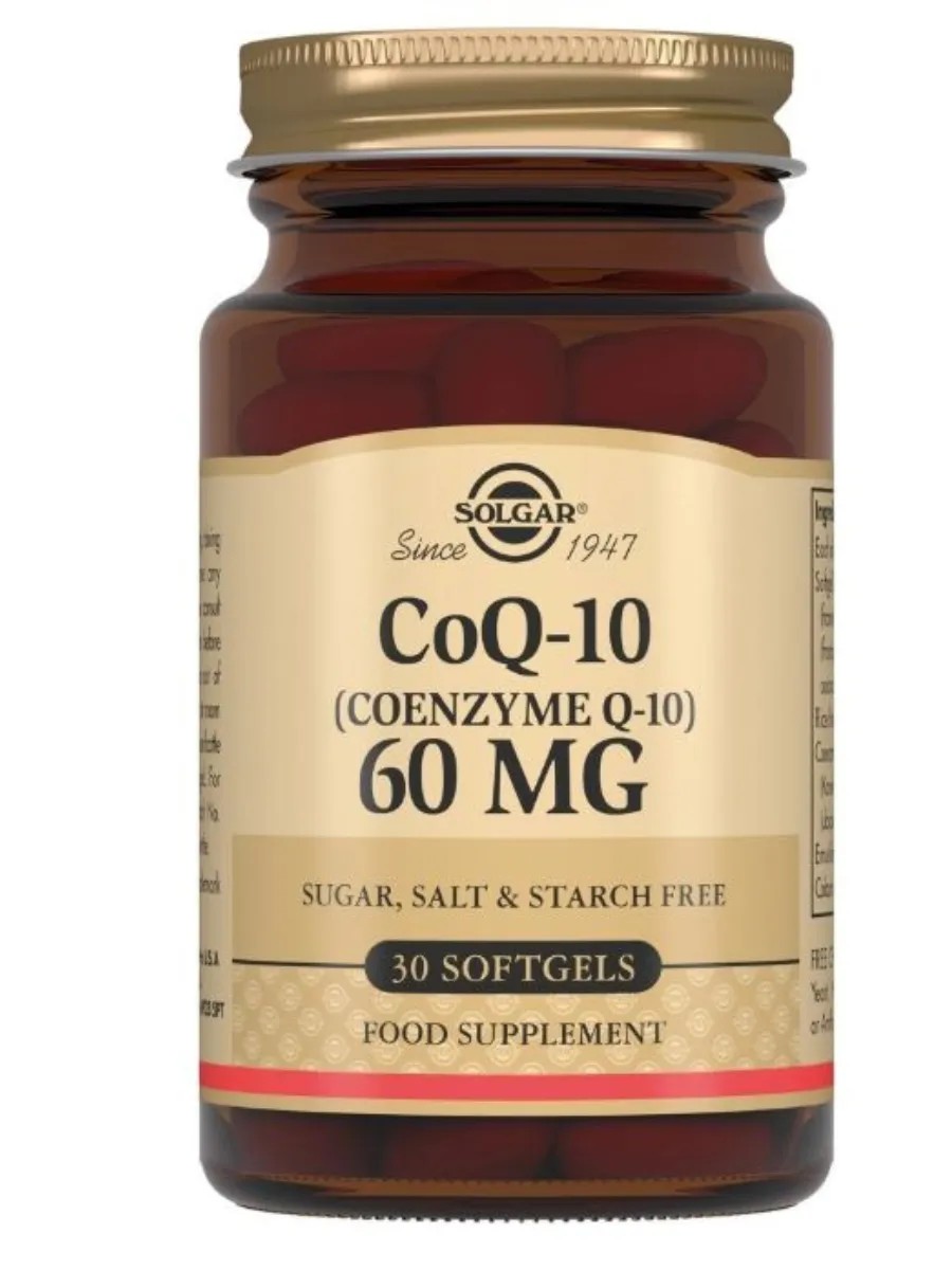 Solgar Coenzyme Q10 capsules 60 mg is a source of coenzyme Q10 to support the heart, blood vessels and energy.
