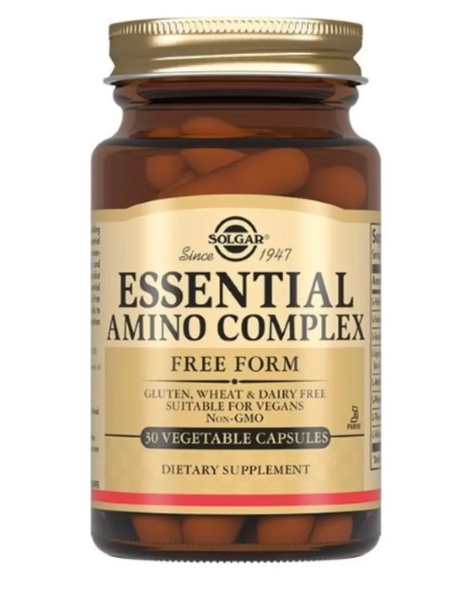 Solgar Essential Amino Acid Complex capsules are a source of essential amino acids to support muscle mass, energy, and metabolism.