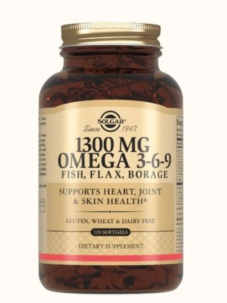 Солгар комплекс жирных кислот 1300 мг омега 3-6-9 - это биологически активная добавка к пище, которая содержит жирные кислоты Омега-3, Омега-6 и Омега-9.