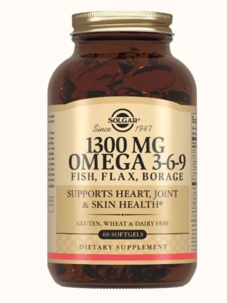 Солгар комплекс жирных кислот 1300 мг омега 3-6-9 - это биологически активная добавка к пище, которая содержит жирные кислоты Омега-3, Омега-6 и Омега-9.