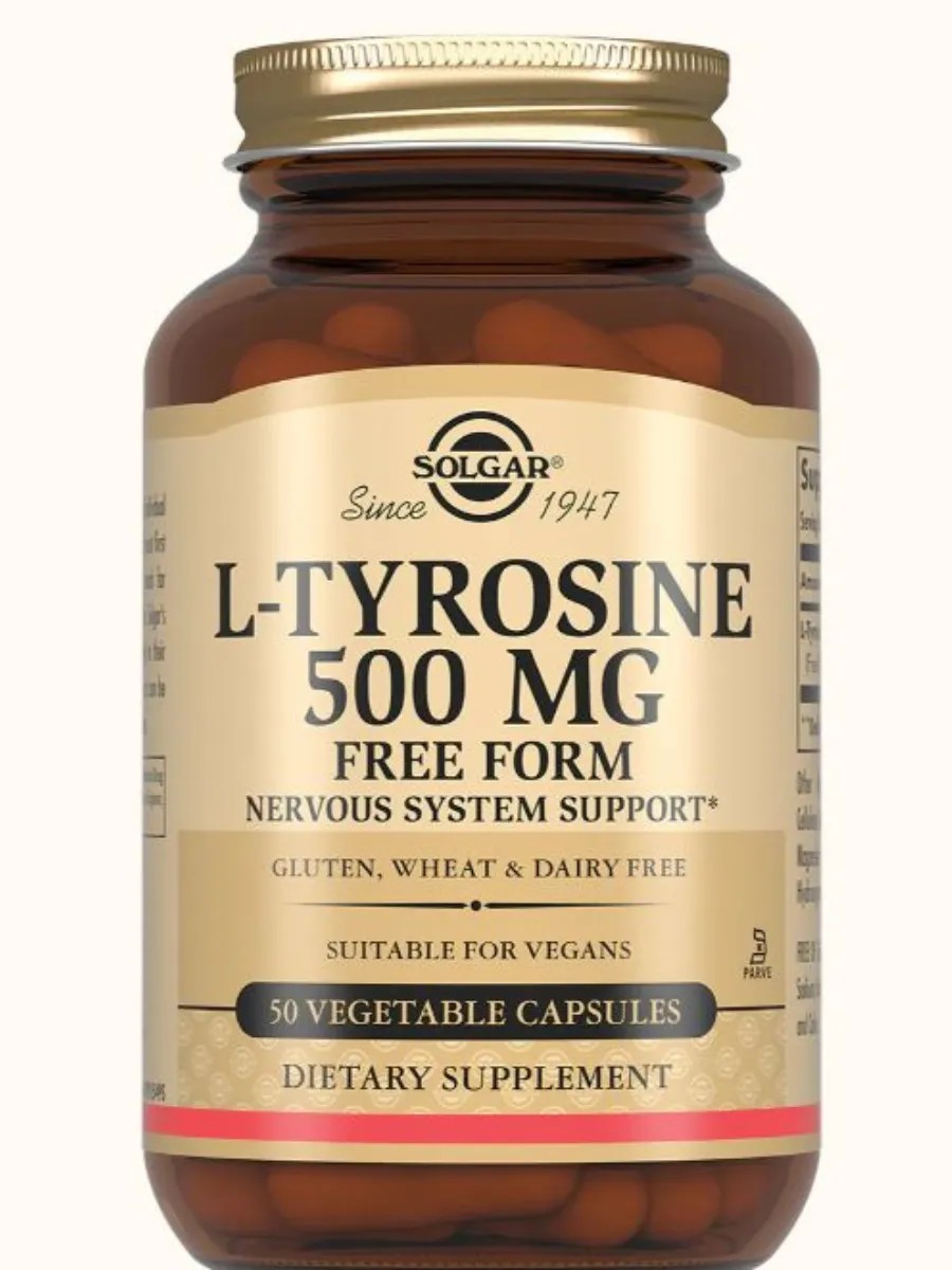 Solgar L-Tyrosine Capsules - the amino acid L-tyrosine for supporting thyroid function and improving cognitive function.