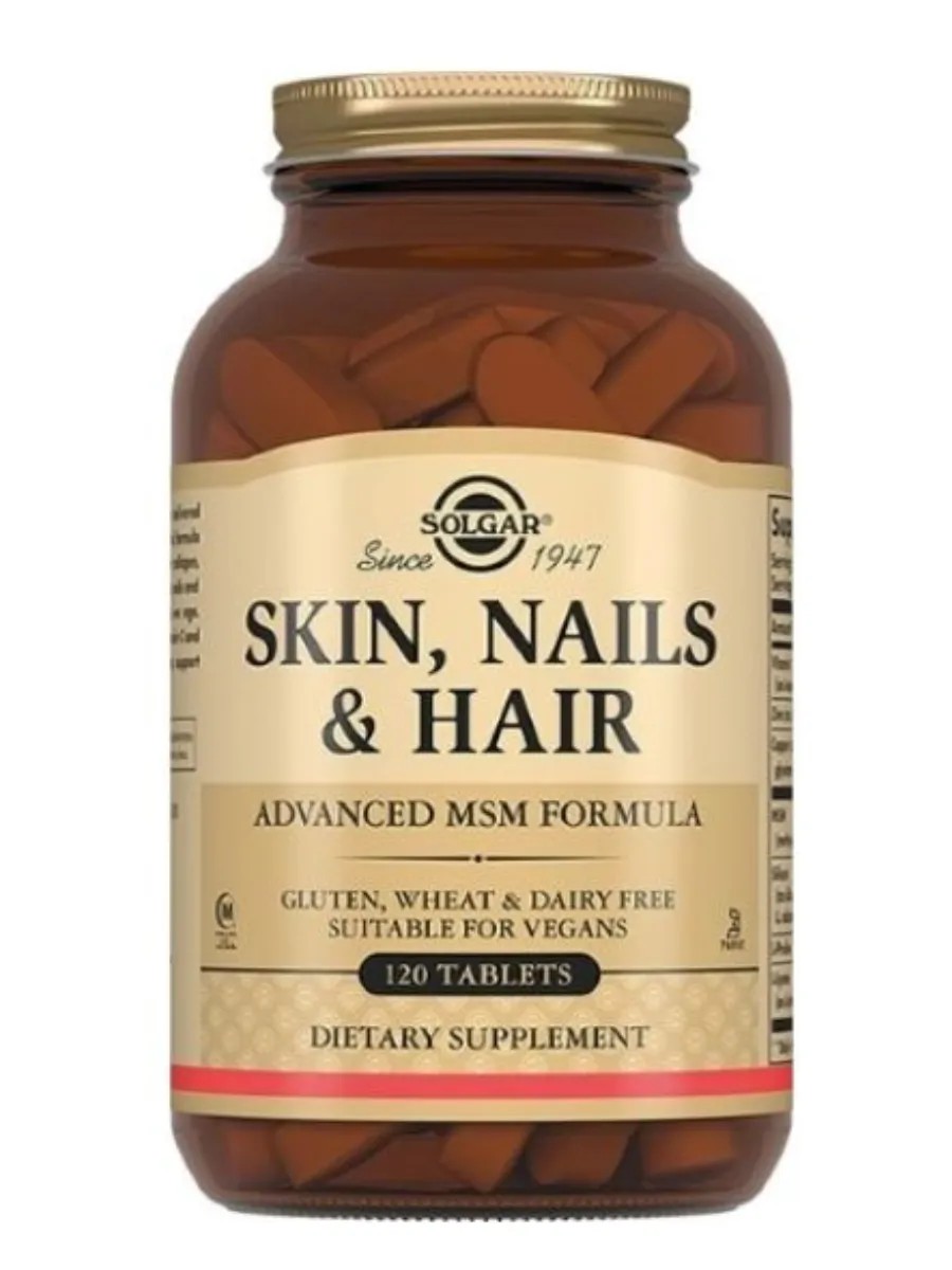 Солгар Кожа, ногти, волосы табл - комплекс витаминов и минералов для улучшения состояния кожи, волос и ногтей. Содержит биотино и другие компоненты, которые укрепляют их структуру. Солгар кожа ногти волосы - это биологически активная добавка (БАД) к пище. Основу комплекса «Кожа, волосы, ногти» составляет МСМ (метилсульфонилметан) – источник органической серы, основной компонент кератина (строительный элемент волос и ногтей), а также коллагена (основа кожи). Сбалансированный состав позволяет коже придавать упругость, эластичность; защищать от пагубного воздействия УФ-лучей; регулировать деятельность сальных желез; укреплять волосы и ногти. Многие питательные вещества не могут попасть в организм извне. Этот препарат предназначен для поддержания уровня коллагена, основного компонента кожи, ногтей и волос, количество которого с возрастом снижается. Прием внутрь питательных веществ, таких как витамин С и медь, способствует поддержанию здорового состояния волос, ногтей и кожи.
