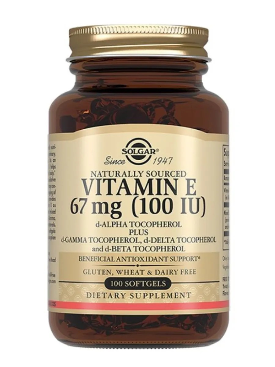 Solgar Vitamin E 100 IU capsules is a source of vitamin E to protect cells from free radicals and support healthy skin.