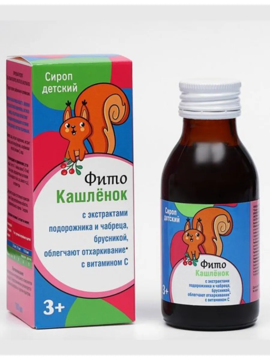 FitoKashlenok syrup for children is a biologically active food supplement that has a general strengthening and mild expectorant effect, improves the functionality of the respiratory system. Increases the body's resistance to colds. It has a pleasant taste and color of lingonberries. Contains no flavorings, colorings, or preservatives. Recommended for children over 3 years old: 1-2 teaspoons (5-10 ml) 3 times a day, previously dissolved in 100 ml of liquid (tea, juice, compote, etc.), during meals. Duration of administration is 2 weeks. It has a general strengthening and mild expectorant effect, improves the functionality of the respiratory system. Increases the body's resistance to colds. It has a pleasant taste and color of lingonberries. Contains no flavorings, colorings, or preservatives. The product has undergone voluntary certification. Favorable price - cheaper than imported analogues!