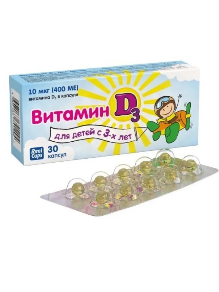 Vitamin D for children, containing 400 IU, is presented in capsules weighing 200 mg each. This is a biologically active food supplement (BAS) that helps maintain a normal balance of phosphorus and calcium in the body, ensures healthy growth and development of bone tissue, and strengthens the immune system. Each package contains 30 capsules and is ideal for children aged 3 years and older. Take according to the instructions, giving your children the health and energy they need for an active and happy life.