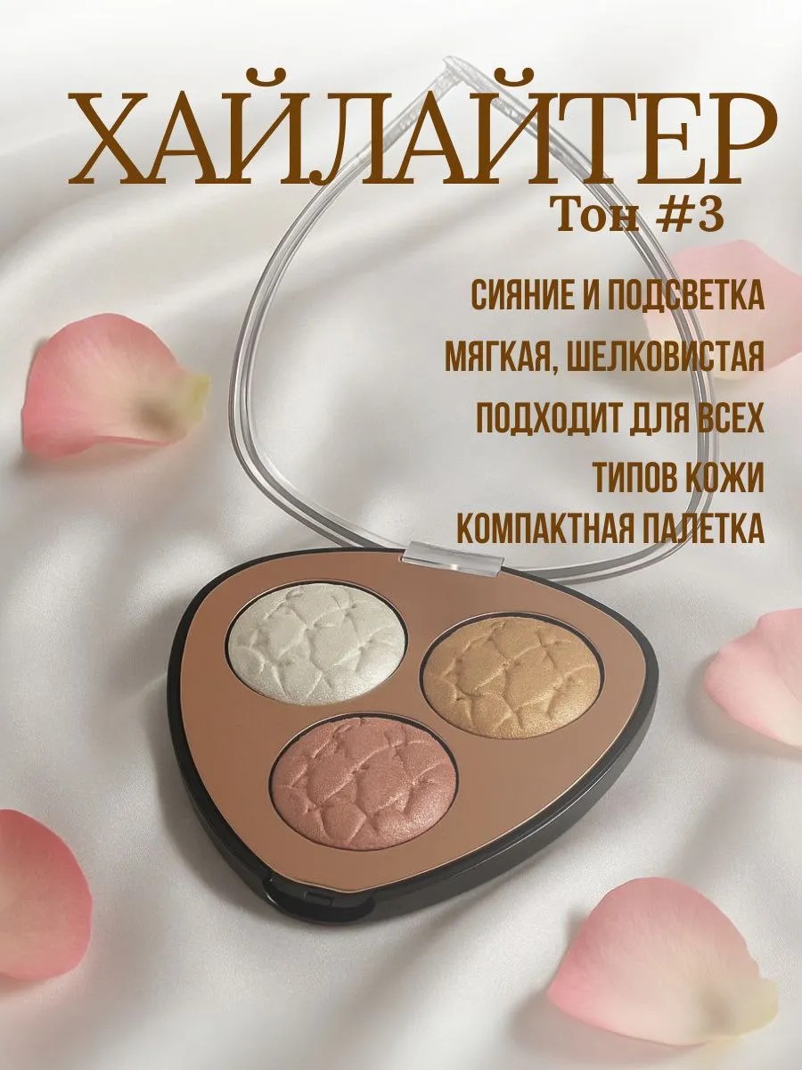 The 3-in-1 highlighter palette replaces several cosmetic products at once, saves space in your makeup bag, and is suitable for any occasion: office work, everyday makeup, photo shoots, dates, and festive events.