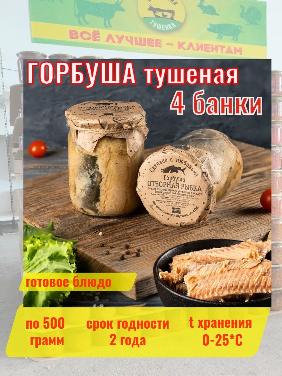 Набор состоит из 4 банок настоящей домашней тушенки из свежей горбуши.