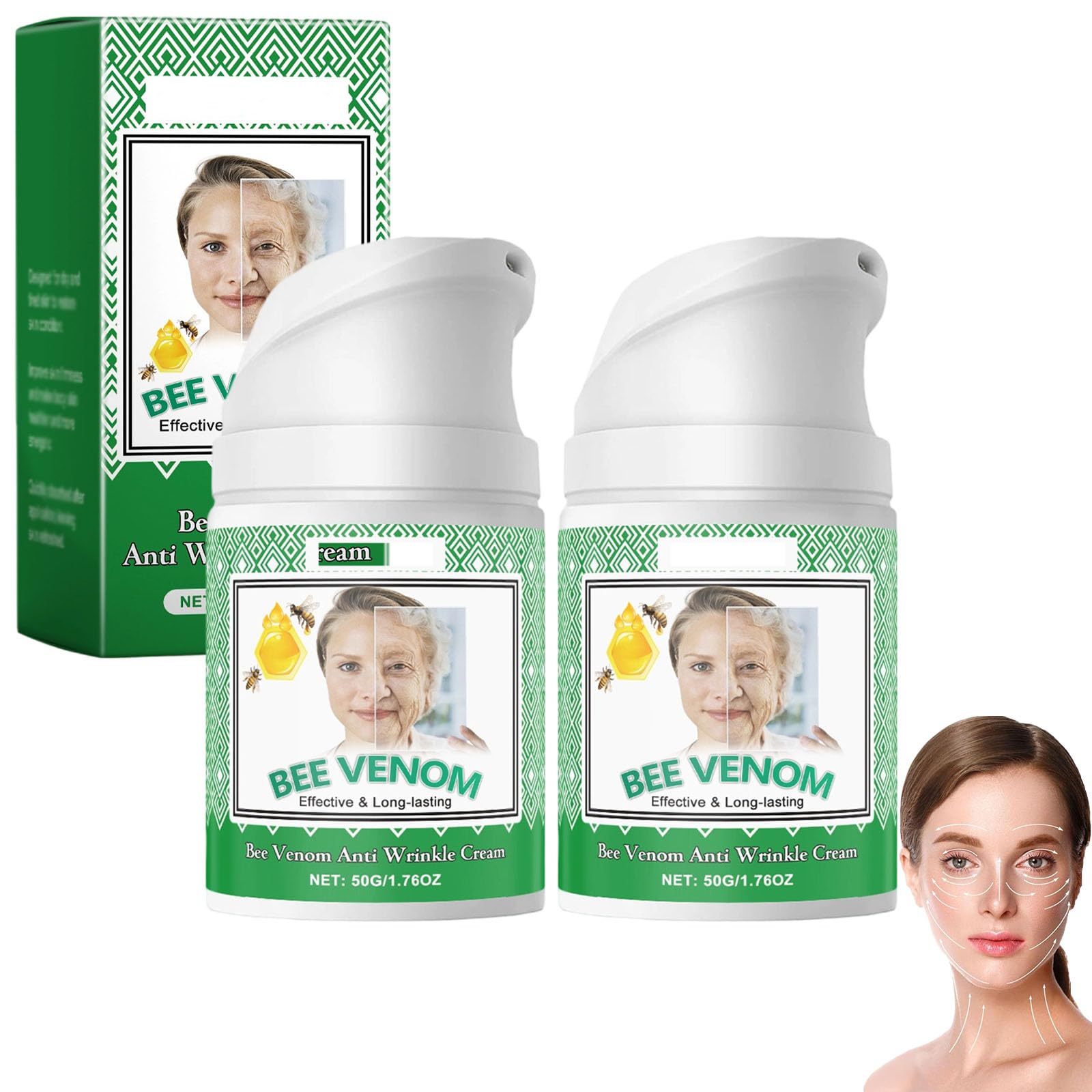 Features: 1. Improves dull complexion. 2. Deeply nourishes the skin. 3. Reduces wrinkles and fine lines. 4. Makes the skin smoother and more delicate. Specifications: Name: Bee Venom Wrinkle Removal Cream Net content: 50 g Shelf life: 3 years Suitable for skin type: Suitable for all skin types Storage: Store in a cool and dry place Package contents: 1 2 3 pieces Bee Venom Wrinkle Removal Cream Notes: 1. Please allow 1-5g 1-2cm deviation due to manual measurement. 2. Due to different monitors and lighting conditions, the picture may not reflect the actual color. Thank you for your understanding. SAFETY WARNING NO5. Mild formula: This moisturizing facial cream for women has a mild formula that is suitable for all skin types, including sensitive and dry skin. In addition, the cream does not contain any irritating ingredients, which ensures comfortable use. 4. Evens out skin tone: This anti-wrinkle cream with bee venom can effectively improve skin texture, reduce roughness, make skin smoother and more delicate, and provide even skin tone and natural glow. 3. Deeply hydrating: The advanced hydrating formula locks in moisture deeply, leaving skin softer and hydrated all day long. This way the skin enjoys long-lasting hydration at all times. 2.Improving Skin Elasticity: This Bee Venom Anti-Wrinkle Firming Cream contains firming ingredients that can effectively reduce skin sagging and improve overall firmness, thus tightening, lifting and giving the skin a youthful appearance. 1. Anti-aging Effects: Bee Venom Anti-Aging Cream can significantly reduce fine lines and wrinkles, improve skin elasticity, and make skin texture youthful and smooth again, making you look more youthful and vital.Bijengif rimpelverwijderingscrème, anti-aging moisturizer voor gezicht en hals, huidverstevigende bodycrème, verzachtend en hydraterend, liftend en herstellend voor alle huidtypen (2pcs) Kenmerken: 1. Verbetert een doffe teint. 2. Voedt de huid diep. 3. Vermindert rimpels en fijne lijntjes. 4. Maakt de huid gladder en delicater. Specificaties: Naam: Bijengif Rimpelverwijderingscrème Netto inhoud: 50 g Houdbaarheid: 3 jaar Geschikt voor huidtype: Geschikt voor alle huidtypen Bewaren: Bewaar op een koele en droge plaats Inhoud verpakking: 1 2 3 stuks Bijengif Rimpelverwijderingscrème Opmerkingen: 1. Houd rekening met een afwijking van 1-5 g 1-2 cm vanwege handmatige meting. 2. Vanwege verschillende beeldschermen en lichtomstandigheden kan de afbeelding de werkelijke kleur mogelijk niet weergeven. Bedankt voor uw begrip. VEILIGHEIDSWAARSCHUWING NO5. Milde formule: Deze hydraterende gezichtscrème voor vrouwen heeft een milde formule die geschikt is voor alle huidtypen, inclusief de gevoelige en droge huid. Bovendien bevat de crème geen irriterende ingrediënten, wat zorgt voor comfortabel gebruik. 4. Egaliseert de huidtint: Deze anti-rimpelcrème met bijengif kan effectief de huidtextuur verbeteren, ruwheid verminderen, de huid gladder en delicater maken en een egale teint en natuurlijke glans geven. 3. Diep hydraterend: De geavanceerde hydraterende formule sluit het vocht diep in, zodat de huid de hele dag zachter en gehydrateerd blijft. Zo geniet de huid te allen tijde van langdurige hydratatie. 2. Verbetering van de huidelasticiteit: Deze Bee Venom Anti-rimpel verstevigende crème bevat verstevigende ingrediënten die effectief huidverslapping kunnen verminderen en de algehele stevigheid kunnen verbeteren, waardoor de huid strakker wordt, wordt gelift en een jeugdig uiterlijk krijgt. 1. Anti-verouderingseffecten: Bee Venom Anti-Aging Cream kan fijne lijntjes en rimpels aanzienlijk verminderen, de huidelasticiteit verbeteren en de huidtextuur weer jeugdig en glad maken, waardoor u er jeugdiger en vitaler uitziet.
