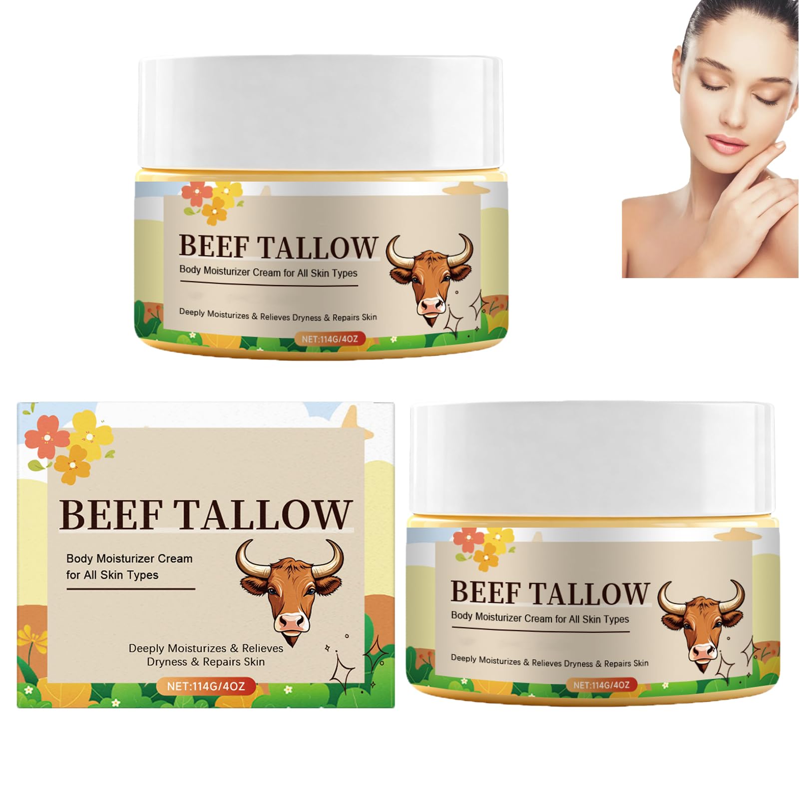 1. Nourishes the skin and restores smoothness. 2. Deeply hydrates and repairs damaged skin. 3. Locks in moisture and smoothes the skin. Specifications: Name: Beef tallow cream Net content: 114 g Shelf life: 3 years Suitable for: All skin types Storage: Store in a cool and dry place Content: 1 2 3 pieces Beef tallow cream Notes: 1. Please allow slight differences in sizing due to different measurements. 2. Due to different monitors, the color of the products shown in the image may differ. View the received product. SAFETY WARNING noMany facial care products: This whipped sebum cream can be used as a face cream, morning cream, night cream, body cream, hand or foot cream, deeply nourishes and cares for the skin and is suitable for use all over the body. Gentle and soothing: The natural properties of sebum in combination with the soothing effect of honey can strengthen the natural skin barrier, promote recovery, provide mild care and help reduce irritated skin. Restores the skin barrier: Beef tallow cream strengthens and protects the natural skin barrier and restores youthful energy. Experience deep hydration, leaving the skin soft and smooth and reducing dryness. Naturally nourishing formula: Contains natural and nourishing ingredients: beef tallow and honey. No synthetic chemicals or artificial fragrances, for natural care of face and body. Long-lasting hydration: This sebum cream contains glycerin, sebum and honey extract and forms a film to reduce moisture loss from the skin. Honey helps retain moisture, making it suitable for dry and normal skin.Rundervet en honingcrème,natuurlijke vochtinbrengende crème met rundervet voor gezicht en lichaam, diep voedende hydratatie voor een droge huid, verzacht en verzacht de huid, lichaamsverzorging (2pcs) Productomschrijving 1. Voedt de huid en herstelt de gladheid. 2. Hydrateert diep en herstelt een beschadigde huid. 3. Sluit vocht in en maakt de huid glad. Specificaties: Naam: Rundertalgcrème Netto inhoud: 114 g Houdbaarheid: 3 jaar Geschikt voor: Alle huidtypen Bewaren: Bewaar op een koele en droge plaats Inhoud: 1 2 3 stuks Rundertalgcrème Opmerkingen: 1. Houd rekening met kleine verschillen in de maatvoering vanwege verschillende metingen. 2. Vanwege verschillende monitoren kan de kleur van de producten op de afbeelding afwijken. Bekijk het ontvangen product. VEILIGHEIDSWAARSCHUWING noVeel gezichtsverzorgingsproducten: Deze opgeklopte talgcrème kan gebruikt worden als gezichtscrème, ochtendcrème, nachtcrème, bodycrème, hand- of voetcrème, voedt en verzorgt de huid diep en is geschikt voor gebruik over het hele lichaam. Zacht en verzachtend: De natuurlijke eigenschappen van talg in combinatie met de verzachtende werking van honing kunnen de natuurlijke huidbarrière versterken, herstel bevorderen, een milde verzorging bieden en een geïrriteerde huid helpen verminderen. Herstelt de huidbarrière: Rundertalgcrème versterkt en beschermt de natuurlijke huidbarrière en herstelt de jeugdige energie. Ervaar een diepe hydratatie, waardoor de huid zacht en glad wordt en droogheid wordt verminderd. Natuurlijk voedende formule: Bevat natuurlijke en voedende ingrediënten: rundertalg en honing. Geen synthetische chemicaliën of kunstmatige geurstoffen, voor een natuurlijke verzorging van gezicht en lichaam. Langdurige hydratatie: Deze talgcrème bevat glycerine, talg en honingextract en vormt een filmlaagje om vochtverlies van de huid te verminderen. Honing helpt vocht vast te houden, waardoor het geschikt is voor een droge en normale huid.