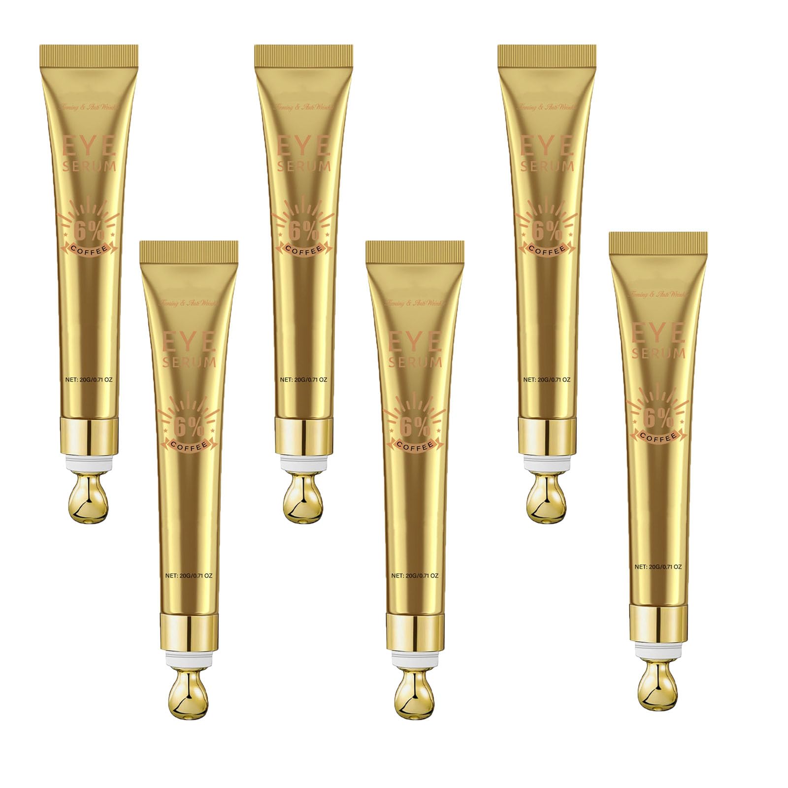 1. Nourishes the eye contour, brightens, and firms. 2. Improves dullness and illuminates the eyes. 3. Lightweight texture, absorbs quickly. 4. Long-lasting hydration, cares for the eye contour. Specifications: Name: 6 Caffeine Eye Cream Contents: 20 ml Shelf Life: 3 years Storage: Store in a cool, dry place. Package Contents: 1 2 3 6 pieces 6 Caffeine Eye Cream Notes: 1. Please allow for slight size variations due to different measuring methods. 2. Due to differences in monitor displays, the color of the image may not reflect the actual product received. Please refer to the actual product received. SAFETY WARNING Store in a dry place at room temperature, avoid direct sunlight, and keep away from high temperatures.Suitable for all skin types Its gentle, fast-absorbing, and non-greasy formula is suitable for sensitive, oily, or dry skin. Its light texture allows for gentle daily use. Anti-aging effect This product visibly reduces wrinkles and fine lines around the eyes, making them smoother and softer, and brightening the eye area. Reduces dark circles Contains caffeine, which effectively reduces dark circles, relieves fatigue and dullness, firms the eye contour, and evens out skin tone. Firms the skin around the eyes This retinol cream with a massaging effect firms the skin around the eyes, improves sagging, reduces puffiness, and enhances the radiance of the eyes. Intense Hydration This eye cream deeply hydrates, improves skin elasticity, reduces roughness and dryness around the eyes, and relieves tightness and discomfort.Crème contour des yeux à la caféine 6 pour les cernes, hydratante et anti-âge, réduisant les poches et les poches, atténuant les rides et ridules, éclaircissante et raffermissante (6pcs)DESCRIPTION DU PRODUIT DESCRIPTION DU PRODUIT Description du produit 1. Nourrit le contour de l'œil, illumine et raffermit. 2. Améliore le teint terne et illumine le regard. 3. Texture légère, pénétration rapide. 4. Hydratation longue durée, prend soin du contour de l'œil. Spécifications : Nom : Crème contour des yeux à la caféine 6 Contenu : 20 ml Durée de conservation : 3 ans Conservation : À conserver dans un endroit frais et sec Contenu de l'emballage : 1 2 3 6 pièces Crème contour des yeux à la caféine 6 Remarques : 1. Veuillez prévoir de légères différences de taille en raison de mesures différentes. 2. En raison des différences entre les écrans, la couleur de l'image peut ne pas refléter celle du produit reçu. Veuillez vous référer au produit reçu. AVERTISSEMENT DE SÉCURITÉ Store in a dry place at room temperature, avoid direct sunlight, and keep awayfrom high temperatures.Convient à tous les types de peau Sa formule douce, à absorption rapide et non grasse, convient aux peaux sensibles, grasses ou sèches. Sa texture légère permet un usage quotidien sans agressivité. Effet anti-âge Ce produit atténue visiblement les rides et ridules du contour de l'œil, le rend plus lisse et plus doux, et illumine le contour de l'œil. Réduit les cernes Contient de la caféine, qui atténue efficacement les cernes, soulage la fatigue et le teint terne, maintient le contour des yeux et unifie le teint. Raffermit la peau du contour des yeux Cette crème au rétinol et à l'effet massant raffermit la peau du contour des yeux, améliore le relâchement, réduit les poches et augmente l'éclat du regard. Hydratation intense Cette crème contour des yeux hydrate en profondeur, améliore l'élasticité de la peau, réduit la rugosité et la sécheresse du contour des yeux, soulage les tiraillements et l'inconfort.