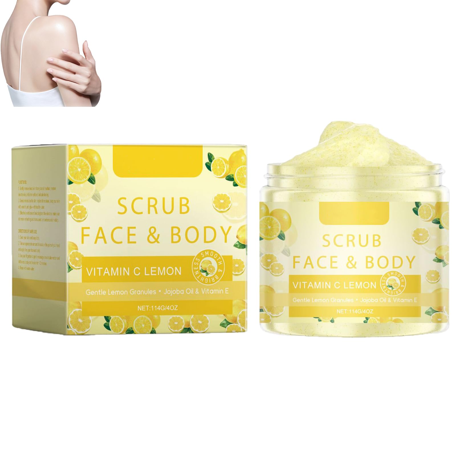 Specifications Lemon Exfoliating Body Scrub, Natural Brightening Scrub Exfoliator for Blackheads and Dead Skin, Soothing and Soothing Skin, Anti-Pigmentation for the Whole Body, Moisturizing and Refreshing, Even Skin Tone, Clean Pores for All Skin Types 1. Brightens skin for a healthy glow. 2. Deeply moisturizes, keeps the skin delicate and hydrated. 3. Gently exfoliates, refreshes and purifies. Name: Lemon Vitamin C Body Scrub Net weight: 114g Shelf life: 3 years Package included 1 2 pcs Lemon Vitamin C Body Scrub Notes: 1. Due to artificial measurements, there may be an error of 0-1cm. Please make sure you don't mind before bidding. 2. Due to the difference between different monitors, the picture may not reflect the actual color of the item. Thank you! SAFETY WARNING noImproves skin texture and minimizes pores: This exfoliating scrub improves skin texture, reduces enlarged pores and makes the skin smoother and more delicate, helping makeup adhere well and last longer, creating a fresh and natural beautiful look. Gentle and Natural Ingredients: This exfoliating scrub uses lemon and nourishing ingredients and is free from irritating chemicals, making it suitable for all skin types and leaving skin healthy and smooth. Brightens skin tone and reduces dullness: uses antioxidant vitamin C, it effectively improves blemishes and uneven skin tone. Regular use can increase the skin's natural glow, giving you renewed self-confidence. Deeply moisturizing: Using moisturizing ingredients, this exfoliating scrub replenishes moisture while cleansing and resists dryness and excess oil. After use, the skin is hydrated and does not feel tight. Suitable for both men and women. Cleansing and Exfoliation: This natural exfoliating scrub with lemon vitamin C contains vitamin C, which can effectively cleanse pores, blackheads and impurities, making the skin smooth and delicate and restoring a healthy glow.Citroen Vitamine C Body Scrub, exfoliërende gel voor het diep reinigen van dode huid en mee-eters, hydraterend, verhelderend en blekend met verfrissende citroengeur, minimaliseert poriën (1pcs) Specificaties Citroen exfoliërende bodyscrub, natuurlijke verhelderende scrub-exfoliator voor mee-eters en dode huid, verzachtende en verzachtende huid, anti-pigmentatie voor het hele lichaam, hydraterend en verfrissend, gelijkmatige huidskleur, schone poriën voor alle huidtypes 1. Verheldert de huid voor een gezonde glans. 2. Hydrateert diep, houdt de huid delicaat en gehydrateerd. 3. Exfolieert zachtjes, verfrist en zuivert. Naam: Citroen Vitamine C Body Scrub Nettogewicht: 114 g Houdbaarheid: 3 jaar Pakket inbegrepen 1 2 stuks Citroen Vitamine C Body Scrub Opmerkingen: 1. Vanwege kunstmatige metingen kan er een fout van 0-1 cm optreden. Zorg ervoor dat u het niet erg vindt voordat u biedt. 2. Vanwege het verschil tussen verschillende monitoren kan het zijn dat de afbeelding niet de werkelijke kleur van het artikel weergeeft. Bedankt! VEILIGHEIDSWAARSCHUWING noVerbetert de huidtextuur en minimaliseert poriën: Deze exfoliërende scrub verbetert de huidtextuur, verkleint vergrote poriën en maakt de huid gladder en delicater, waardoor make-up goed blijft hechten en langer meegaat, waardoor een frisse en natuurlijke, mooie uitstraling ontstaat. Zachte en natuurlijke ingrediënten: Deze exfoliërende scrub maakt gebruik van citroen en voedende ingrediënten en is vrij van irriterende chemicaliën, waardoor het geschikt is voor alle huidtypes en de huid gezond en glad maakt. Verheldert de huidskleur en vermindert dofheid: maakt gebruik van antioxidant vitamine C, het verbetert effectief vlekken en een ongelijkmatige teint. Regelmatig gebruik kan de natuurlijke glans van de huid vergroten, waardoor u hernieuwd zelfvertrouwen krijgt. Diep hydraterend: gebruik vochtinbrengende ingrediënten, deze exfoliërende scrub vult vocht aan tijdens het reinigen en is bestand tegen uitdroging en overtollige olie. Na gebruik is de huid gehydrateerd en voelt niet trekkerig aan. Geschikt voor zowel mannen als vrouwen. Reiniging en peeling: deze natuurlijke exfoliërende scrub met citroen-vitamine C bevat vitamine C, die poriën, mee-eters en onzuiverheden effectief kan reinigen, waardoor de huid glad en delicaat wordt en een gezonde glans herstelt.