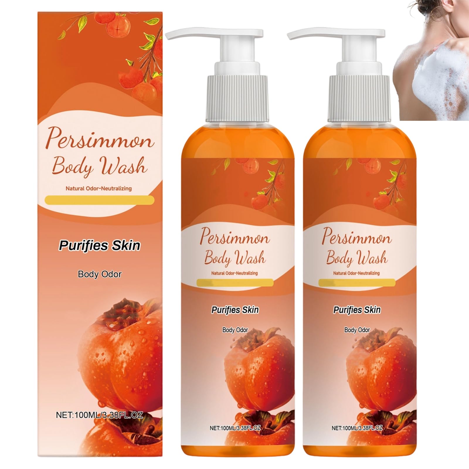 Specifications 1. Unisex use, pleasant fragrance. 2. Lathers easily, long-lasting freshness. 3. Gentle formula, suitable for use on many surfaces. Specifications Name: Persimmon Body Wash Net Contents: 100 g Shelf Life: 3 years Suitable for Skin Type: Suitable for all skin types Package Contents: 1 2 3 pieces Khaki Body Wash Note: 1. Actual colors may vary slightly due to different monitor settings. 2. Please allow slight measurement errors due to manual measurement. SAFETY WARNING NoSuitable for All Skin Types : Whether you have dry, oily, or combination skin, this khaki body wash gently cleanses and nourishes, meeting the needs of different skin types. This simplifies your daily skincare routine. Gentle and Non-Irritating : This natural khaki body wash contains skin-friendly ingredients, specially formulated for sensitive and dry skin. They soften and moisturize the skin, ensuring a comfortable shower experience. Suitable for the whole family. Long-Lasting Fresh Scent : This deodorizing khaki body wash releases a long-lasting fresh scent and effectively eliminates old age, smelly feet, and strong body odor. This keeps you feeling fresh and pleasant all day long. Deeply Nourishing : Containing powerful moisturizing ingredients, it penetrates deep into the skin to replenish nutrients, improve dryness and roughness, and leave skin softer, smoother, and plumper. Powerful Deodorizing Effect : This shower gel with persimmon extract contains natural persimmon extract and effectively eliminates body odor. At the same time, the skin is nourished and feels fresh and clean.Persimmon Body Wash for Senteur Aîné, Persimmon Deodorant Gel Douche, Nettoyant en Profondeur Hydratant Corps Wash pour Hommes Femmes, Rafraîchissant et Régulateur d'Huile (2pcs)DESCRIPTION DU PRODUIT DESCRIPTION DU PRODUIT Spécificités 1. Utilisation unisexe, parfum agréable. 2. Facilement moussant, rafraîchissement durable. 3. Formule douce, applicable sur de nombreuses surfaces. Spécificités Nom : nettoyant pour le corps Persimmon Contenu net : 100 g. Durée de conservation : 3 ans. Adapté au type de peau: Convient à tous les types de peau Contenu de l'emballage : 1 2 3 pièces Kaki Body Wash Remarque : 1. Les couleurs réelles peuvent varier légèrement en raison des différents écrans. 2. Les mesures étant prises à la main, les tailles indiquées peuvent varier légèrement. AVERTISSEMENT DE SÉCURITÉ NonConvient à tous les types de peaux : Que vous ayez une peau sèche, grasse ou mixte, ce nettoyant pour le corps kaki nettoie et nourrit la peau en douceur et répond aux besoins des différents types de peau. Ainsi, votre processus de soin quotidien est simplifié. Doux et non irritant : ce nettoyant corporel naturel au kaki contient des ingrédients doux pour la peau, spécialement conçus pour les peaux sensibles et sèches. Ils adoucissent et hydratent la peau et assurent une expérience de douche confortable. Convient pour toute la famille. Parfum frais longue durée : ce nettoyant pour le corps désodorisant au kaki diffuse un parfum frais durable et élimine efficacement les odeurs des personnes âgées, des pieds malodorants et des odeurs corporelles fortes. Ainsi, vous restez frais et agréable toute la journée. Nourrissant en profondeur : Contient de puissants ingrédients hydratants, il pénètre profondément dans la peau pour reconstituer les nutriments, améliorer la sécheresse et la rugosité et rendre la peau plus douce, plus lisse et repulpée. Effet désodorisant puissant : ce gel douche à l'extrait de kaki contient de l'extrait de kaki naturel et élimine efficacement les odeurs corporelles. En même temps, la peau est nourrie et se sent fraîche et propre.