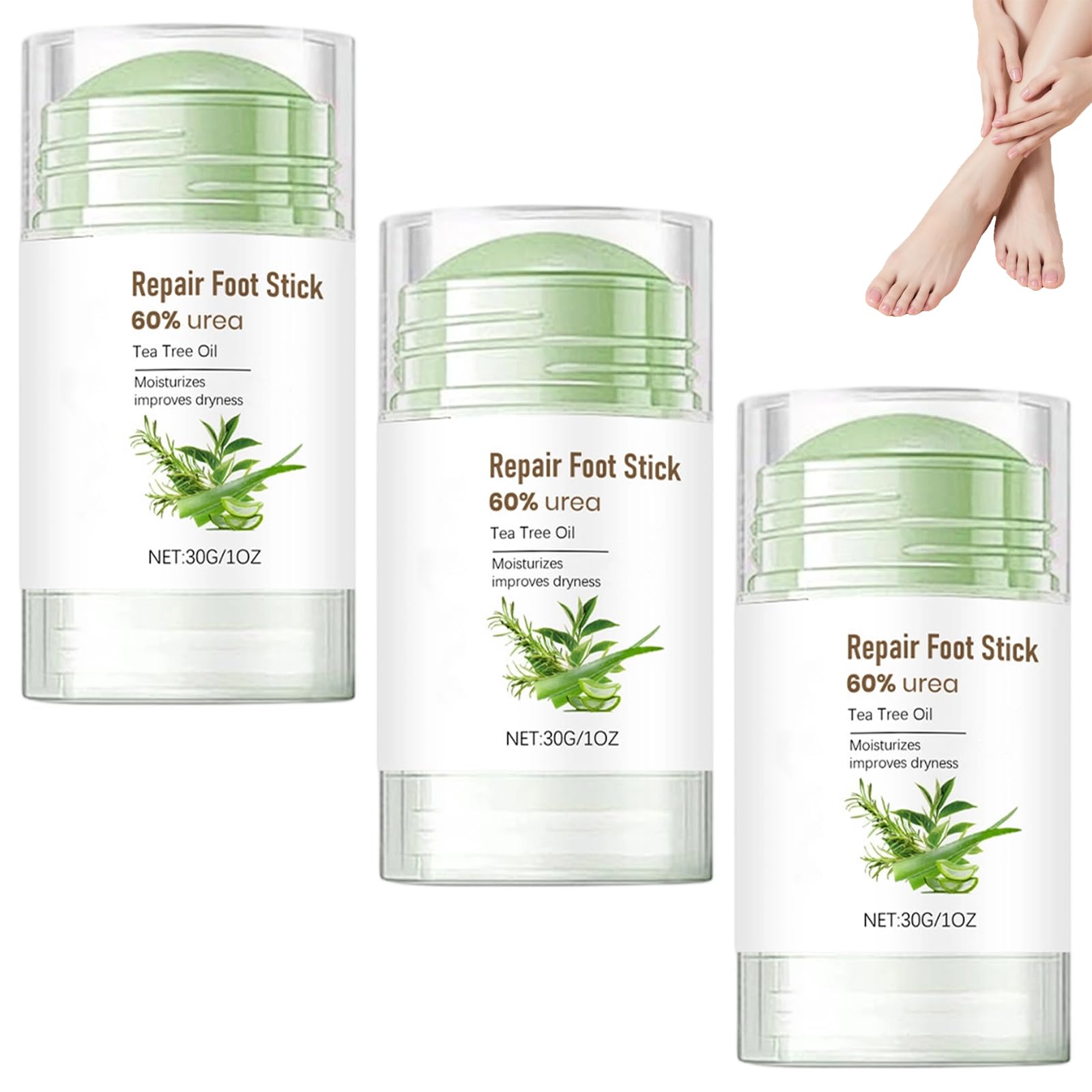 Specifications 1. Continuously replenishes the moisture balance of your feet. 2. Leaves your feet feeling refreshed and comfortable. 3. Improves the overall condition of your foot skin. 4. Easy to apply and absorbs quickly. Specifications Name: Repair Foot Stick Net Contents: 30g Shelf Life: 3 years Suitable for Skin Type: Suitable for all skin types Quantity: 1 2 3 pieces Repair Foot Stick Note: 1. Actual colors may vary slightly due to different monitor settings. 2. Please allow slight variations in size due to manual measurement. SAFETY WARNING NoApplicable to Many Body Parts : Suitable not only for feet, but also for hands, ankles, elbows, legs, and knees. It is suitable for all skin types and can easily treat rough skin, ensuring perfect care. Portable Design : The portable stick of this foot cream is lightweight and easy to carry, providing quick and effective care. This makes it a good option for foot and hand care on the go. Fast Absorption : This foot cream stick absorbs quickly without leaving a greasy film. The cream instantly moisturizes your skin, giving it a healthy, radiant glow. Your feet will stay comfortable and moisturized all day long. Gentle Exfoliation : This urea foot cream stick gently exfoliates and helps restore smoothness and softness, giving your skin a revitalized appearance. Intensive Hydration : Formulated with 60 urea, this urea foot cream deeply hydrates and replenishes nutrients and quickly repairs dry, chapped and rough skin for a smooth and radiant complexion.Bâton de pied réparateur avec 60 d'urée, bâton de crème pour les pieds à l'urée pour peaux gercées et sèches, élimination des callosités pour les pieds et les mains, hydratant en profondeur, adoucit 3 PcsDESCRIPTION DU PRODUIT DESCRIPTION DU PRODUIT Spécificités 1. Reconstitue en permanence l'équilibre hydrique de vos pieds. 2. Permet à vos pieds de se sentir rafraîchi et confortable. 3. Améliore l'état général de la peau de votre pied. 4. Facile à appliquer et pénètre rapidement. Spécificités Nom : bâton de pied de réparation Contenu net : 30 g. Durée de conservation : 3 ans. Adapté au type de peau: Convient à tous les types de peau Capacité : 1 2 3 pièces Repair Foot Stick Remarque : 1. Les couleurs réelles peuvent varier légèrement en raison des différents écrans. 2. Les mesures étant prises à la main, les tailles indiquées peuvent varier légèrement. AVERTISSEMENT DE SÉCURITÉ NonApplicable à de nombreuses parties du corps : convient non seulement aux pieds, mais aussi aux mains, aux chevilles, aux coudes, aux jambes et aux genoux. Il convient à tous les types de peau et peut facilement traiter les peaux rugueuses, ce qui assure un soin parfait. Design portable : le bâton portable de cette crème pour les pieds est léger et facile à transporter, offrant un entretien rapide et efficace. Cela en fait une bonne option pour les soins des pieds et des mains lors de vos déplacements. Absorption rapide : cette crème pour les pieds en forme de bâton pénètre rapidement sans laisser de film gras. La crème hydrate instantanément votre peau et procure une peau saine et éclatante. Ainsi, vos pieds restent confortables et hydratés toute la journée. Doux exfoliant : ce bâton de crème pour les pieds à l'urée exfolie en douceur et aide à restaurer la douceur et la douceur, donnant à votre peau un aspect revitalisé. Hydratation intensive : formulée avec 60 d'urée, cette crème pour les pieds à l'urée hydrate en profondeur et reconstitue les nutriments et répare rapidement les peaux sèches, gercées et rugueuses pour un teint lisse et éclatant.