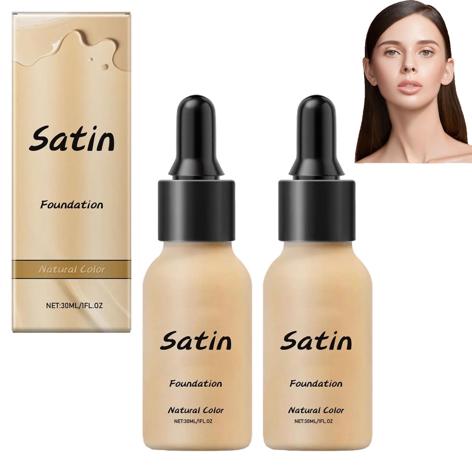 homomdy Satin Dropping Foundation Long Lasting Nuder Makeup Brightening Oil Control Full Coverage for Concealer Makeup Moisturizing Brightening Liquid Foundation 2pcs
