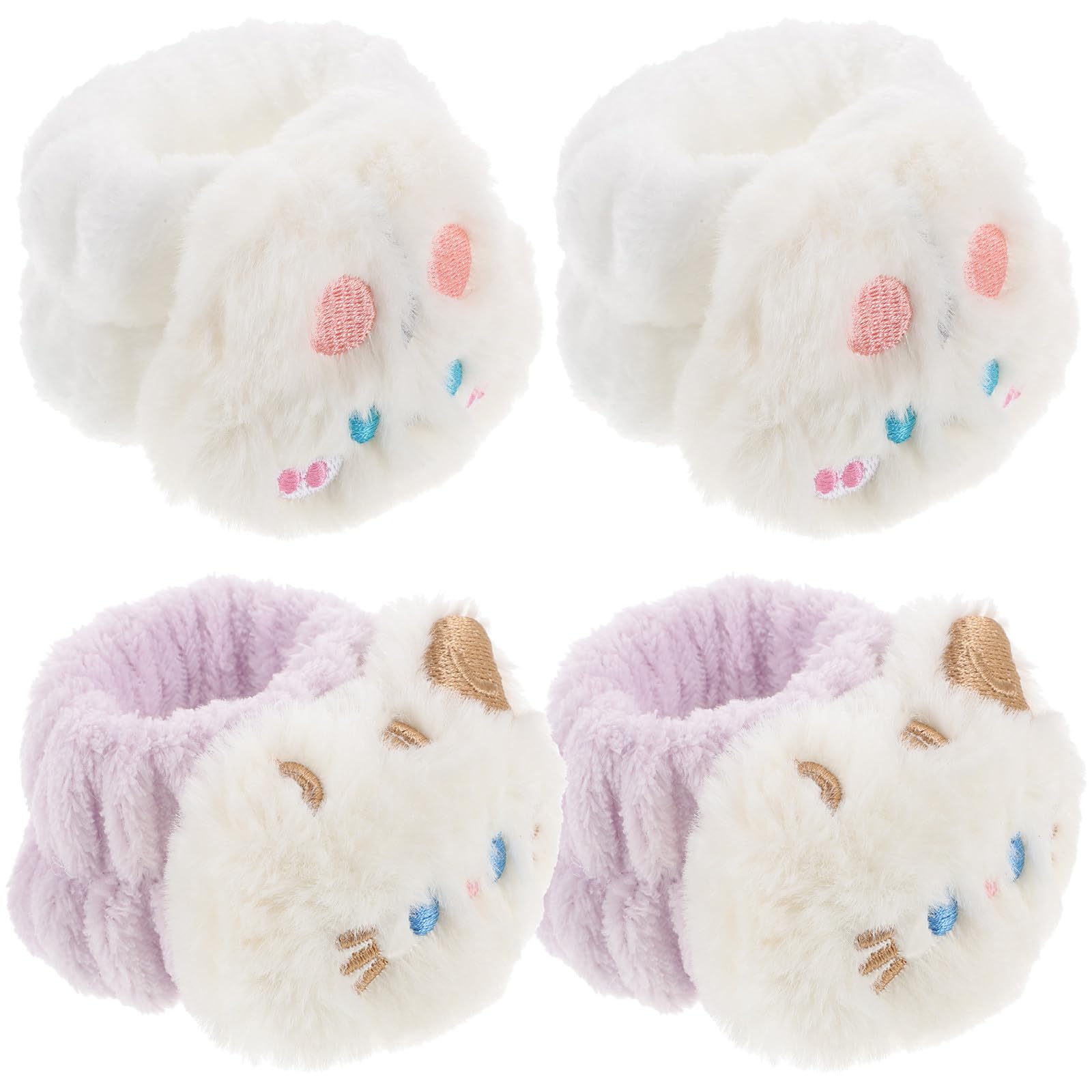 Homoyoyo Lot de 4 Bracelets Absorbants D'eau pour Lavage du Visage en Tissu Imitation Fourrure, Taille Ajustable, Couleur Blanche, Ensemble Confortable pour Spa et Soins Personnels,