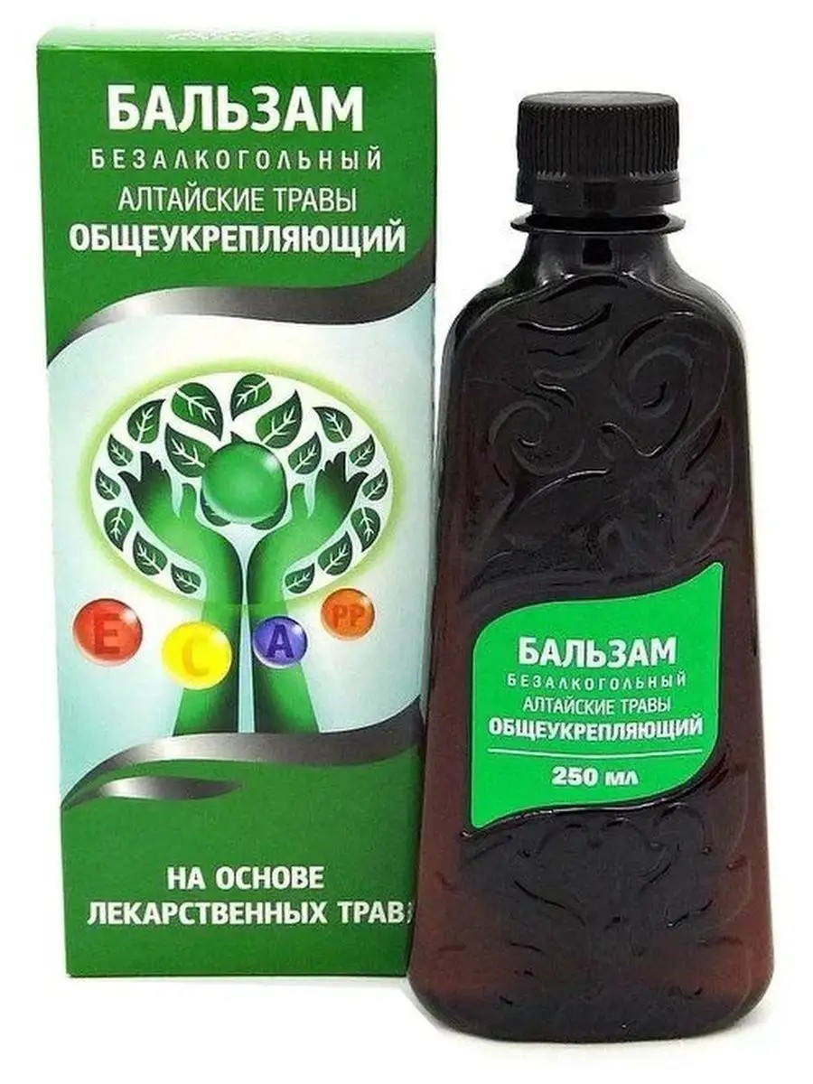 Бальзам Алтайские травы Общеукрепляющий 250 мл. Бальзам «Алтайские травы» нормализующий рекомендуется в качестве средства способствующего нормализации обмена веществ. Обладает выраженным адаптогенным действием, способствует выведению из организма токсичных веществ, холестерина, активизирует работу желудочно-кишечного тракта, очищает стенки сосудов.В состав этого бальзама входят: экстракты душицы, красной рябины, спорыша, чабреца, семени укропа, боярышника, листа черной смородины, мелиссы. Способ применения: взрослым принимать по 1-2 ч.л. 3 раза в день во время еды, с напитками. Противопоказания: индивидуальная непереносимость компонентов, беременность, кормление грудью, сахарный диабет, лицам с избыточной массой тела. Не сочетать с приёмом лекарственных средств. Состав: водные экстракты плодов рябины обыкновенной, плодов боярышника кроваво-красного, травы чабреца, травы мелиссы лекарственной, листьев черной смородины, травы душицы обыкновенной, травы горца птичьего, плодов укропа пахучего с добавлением вспомогательных веществ: сахара, регулятора кислотности — лимонной кислоты,консерванта — сорбата калия Замечательный новогодний подарок для себя и близких!