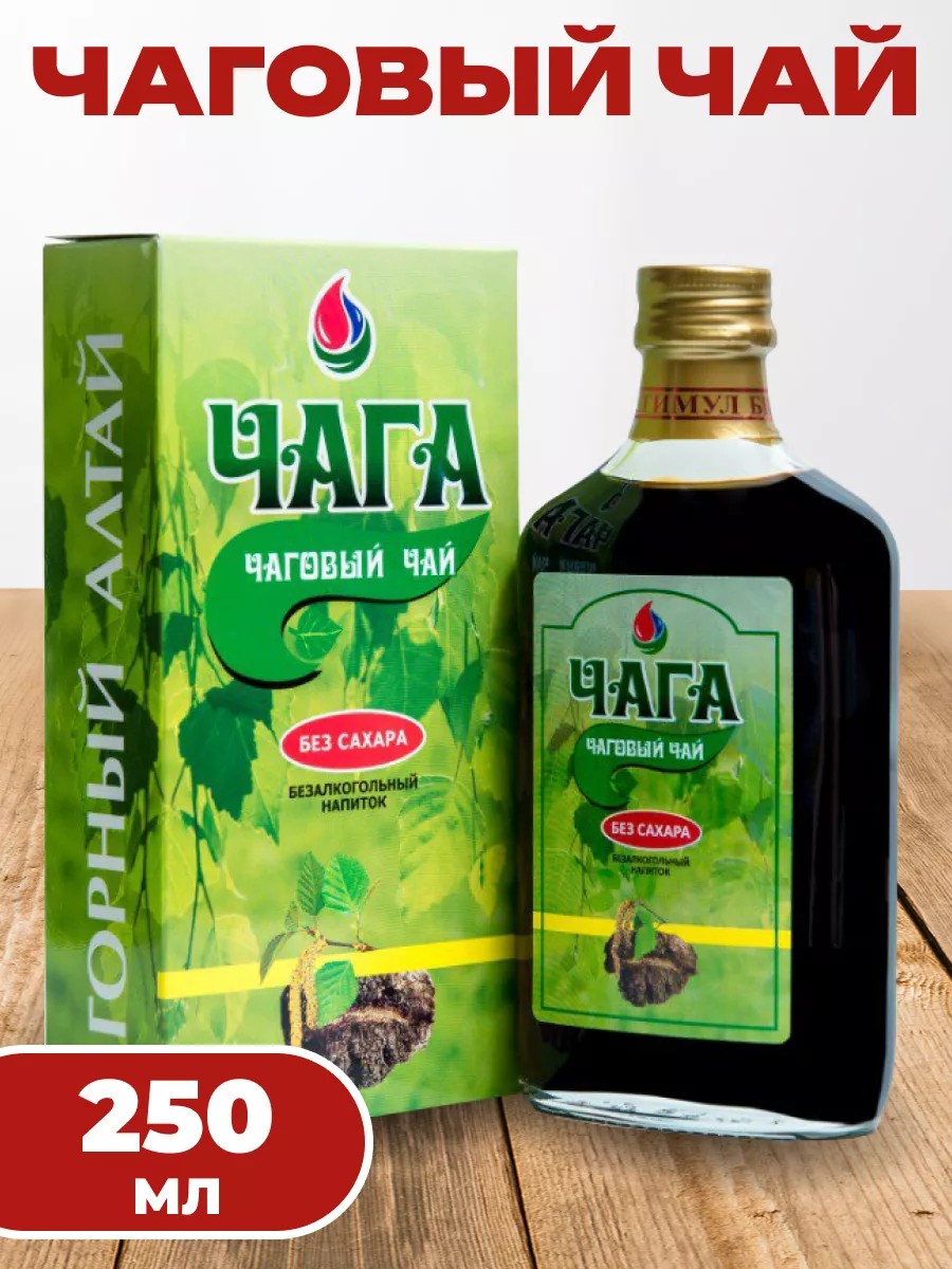 Безалкогольный напиток Чага (Чаговый чай)Безалкогольный напиток, предназначенный для профилактического питания, является источником высокополимерных соединений. Эффективен при сочетании болезней жкт с кожными заболеваниями (дерматиты, экземы, акне, псориаз и т.д.), повышенном артериальном давлении, избыточном сахаре в крови.Свойства чаги:olЧага черный березовый гриб, Fungus Betulinus. Биоактивные компоненты чаги полифенолы, полисахариды, лигнин, стероидные соединения, соли кремния, железа, алюминия, кальция, натрия, магния, цинка, меди, марганца, калия. В комплексе регулируют обмен веществ на уровне клеток, активизируют обмен веществ в эпидермисе, обладают противоопухолевым действием.Синергичное действие лигнина и полисахаридов чаги способствует связыванию и выведению из организма токсичных и вредных веществ, желчных кислот, холестерина, тем самым нормализуется клеточный обмен в органах и тканях.Использование водного настоя чаги особенно эффективно в случаях сочетания кожного заболевания (экземы, псориаз, различные дерматиты, угревая сыпь, акне и др.) с воспалительными заболеваниями ЖКТ, печени, желчевыделительной системы.Биологически активные вещества отвара внутренней части гриба, а именно эта часть гриба используется для изготовления продукта Чага. Чаговый чай, обладают гипогликемизирующим действием. Максимальное снижение уровня глюкозы в сыворотке крови наблюдается через 1,5 часа после приёма отвара внутрь. Уровень сахара при этом понижается на 15,8 - 29,9%.Отвар чаги способствует снижению артериального и венозного давления, урежает пульс./olЧага. Чаговый чай изготавливается из экологически чистого сырья Горного Алтая. Технология изготовления продукта контролируется на всех стадиях технологического процесса от заготовки исходного сырья до конечного продукта.Состав:Водный экстракт чаги (березовый гриб) с добавлением сорбиновой кислоты (консервант).Способ применения:Принимать по 1 чайной ложке 2-3 раза в день. Можно добавлять в воду, чай, кофе, соки и другие напитки. Для усиления терапевтического действия допускается увеличение дозировки до 1 столовой ложки 3 раза в день. Перед применением рекомендуется проконсультироваться с врачом.Срок годности:12 месяцев.Данная продукция не является лекарственным средством. Замечательный новогодний подарок для себя и близких!